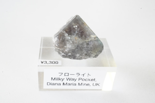 イギリス、ダイアナマリア鉱山 Milky Way Pocketのフローライトです。 サムネイルサイズ。 グレーに白いヒビのようなインクルージョンが入ったフローライトの結晶です。 インクルージョンの入り方が銀河に似ています。 紫や緑の細いゾーニングが見える美しいピースです。 イギリスのフローライトではもはや一番有名かもしれない産地、 ダーラム地方のダイアナマリア鉱山。 緑色の強蛍光フローライトが採れると人気だったロジャリー鉱山を、 2017年UK mining ventureという会社が買い取り、 ほぼ採り尽くされて枯渇したロジャリー鉱山のすぐ横、1970年代にわずかに採掘されただけのサトクリフ鉱脈を掘り始めたのがダイアナマリア鉱山です。 ミルキーウェイポケットは2020年9月上旬に発見されました。 銀河、天の川、星のような白い蛍石の内包物によって斑点がついた 夜空のような黒い蛍石の結晶にちなんで名付けられました。 産地 Diana Maria Mine (Milky Way Pocket), Rogerley Quarry, Stanhope, County Durham, England, UK サイズ: 27×25×17 mm