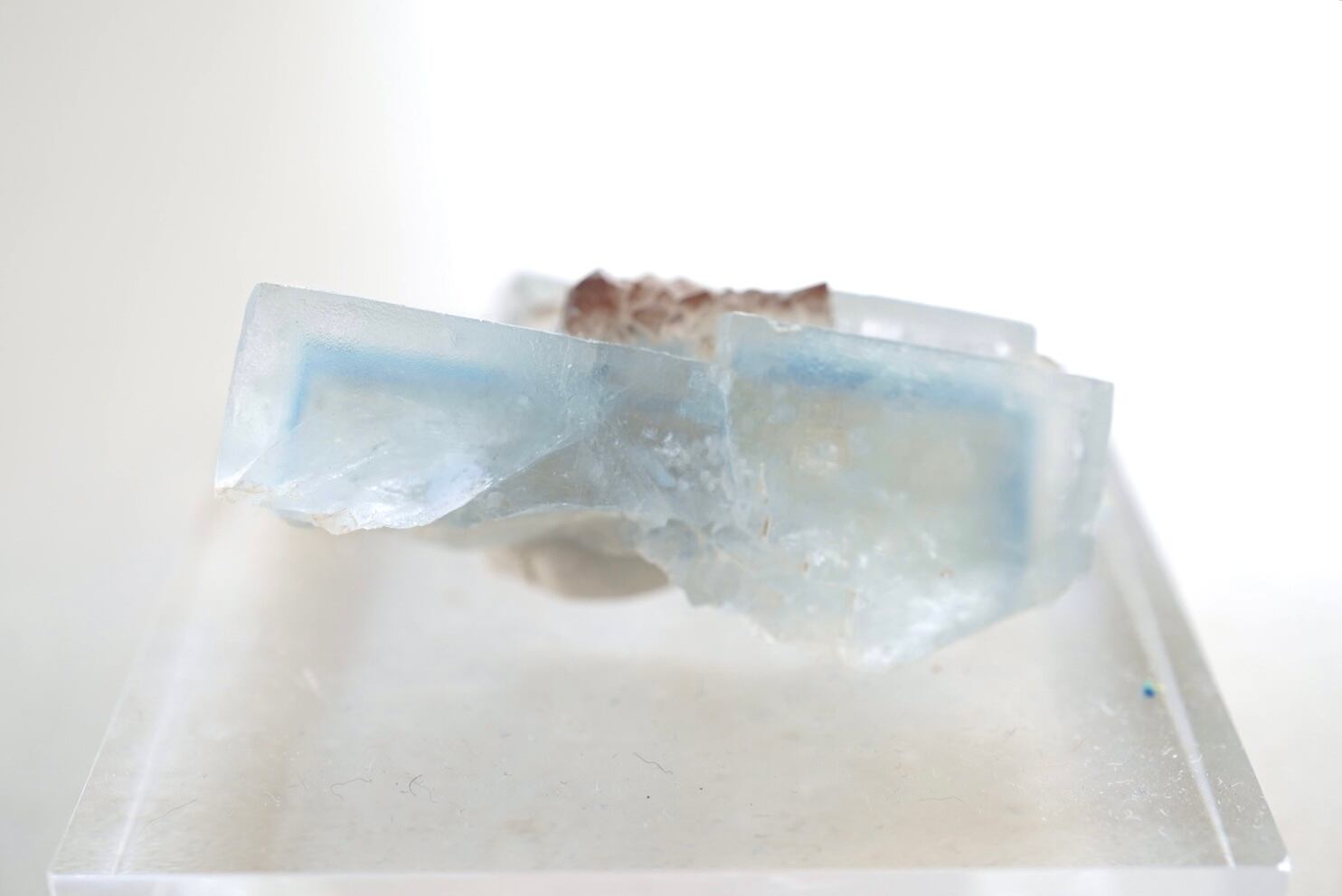淡い水色のキューブ状フローライト結晶のかけらです。