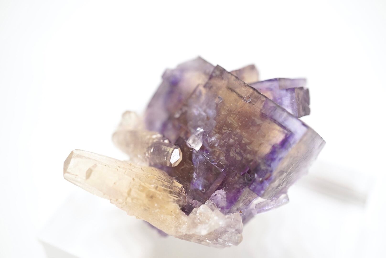 なかなかない優美なイリノイのカルサイト付きフローライトの標本です。