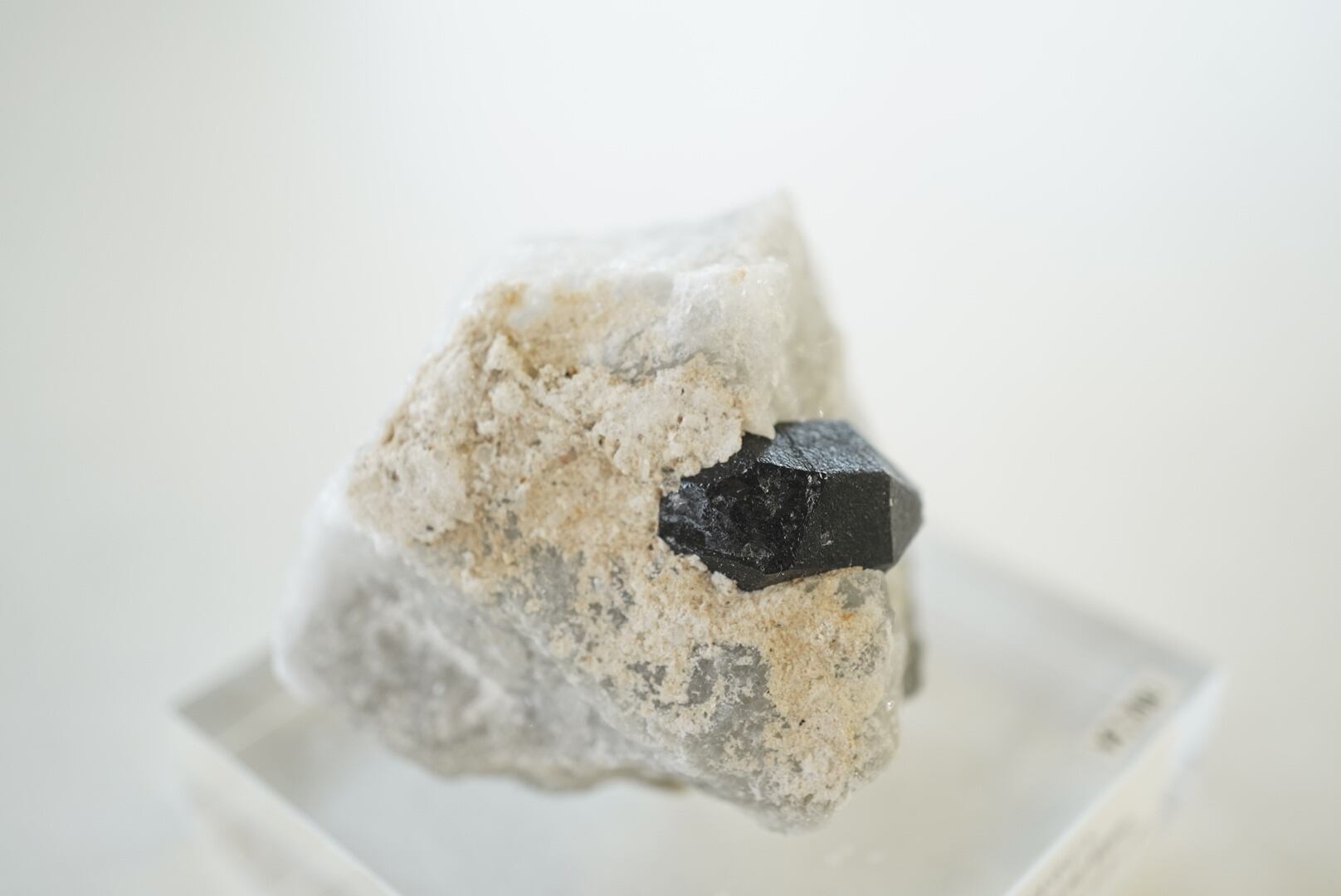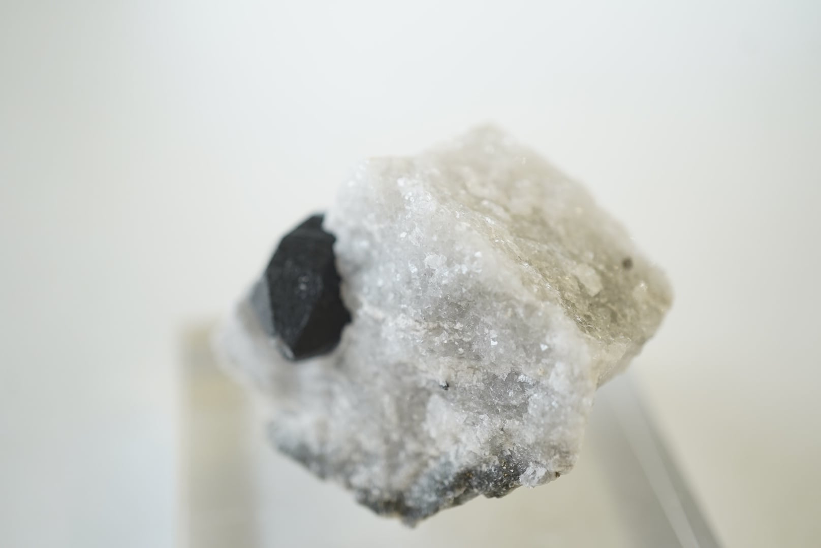 ちょこんとはまった大粒の真っ黒い両錐水晶。