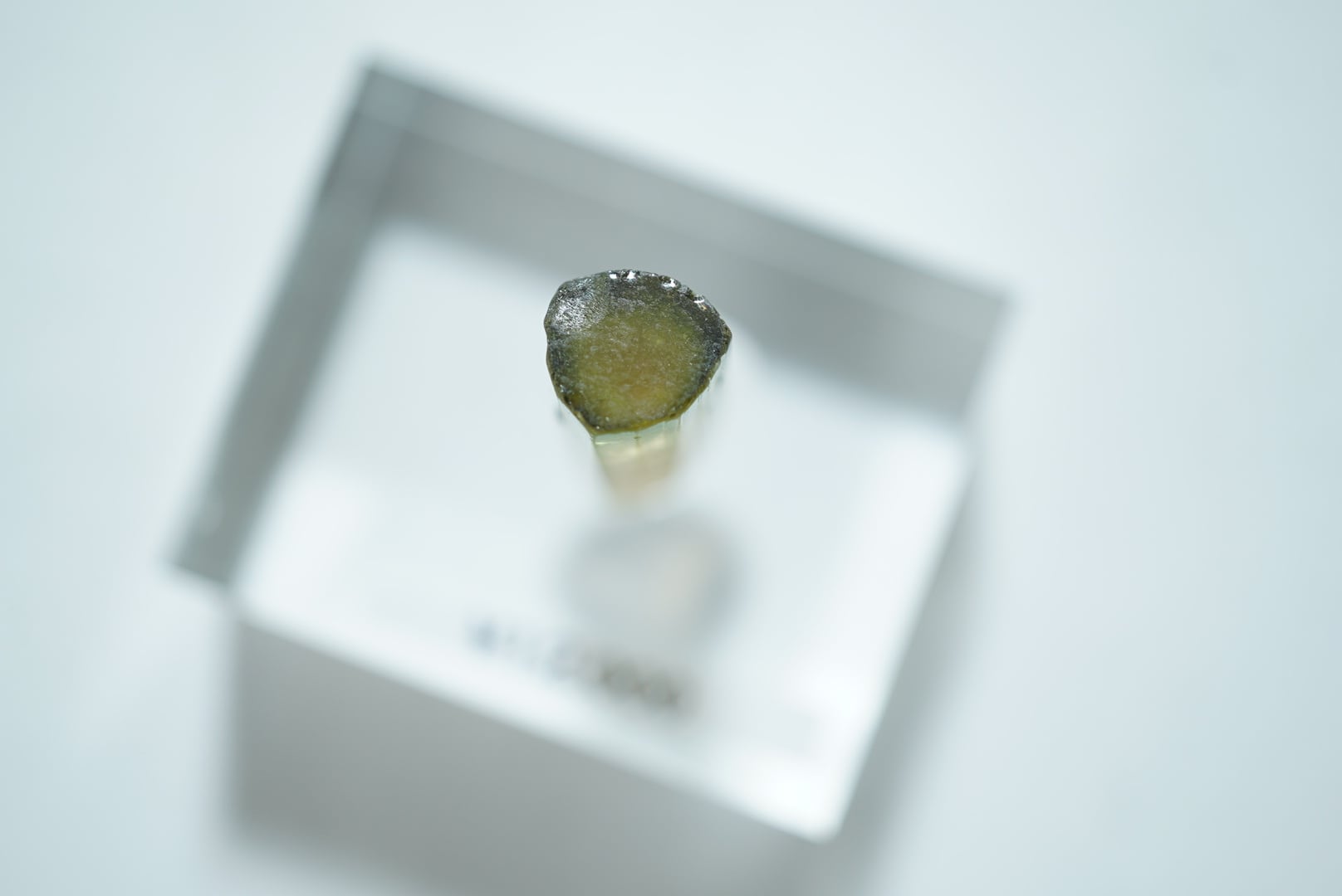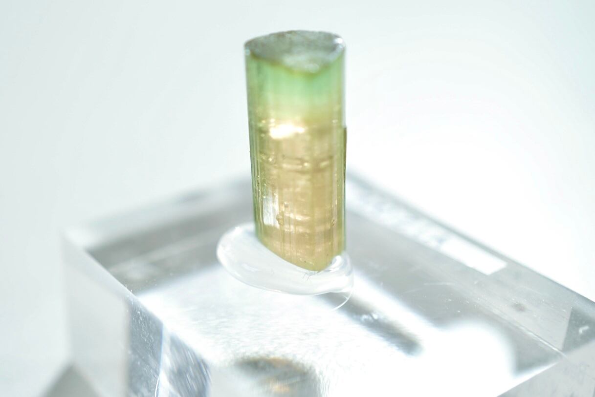 発色のいいグリーンが外側でくるんだ柱状結晶。