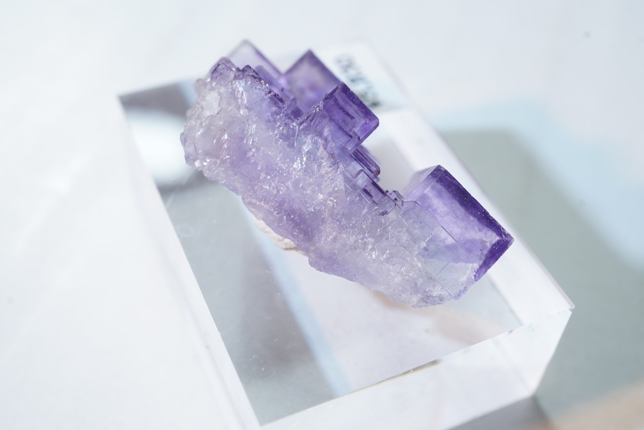 非常に形の良いキューブ状フローライトが連なった標本です。