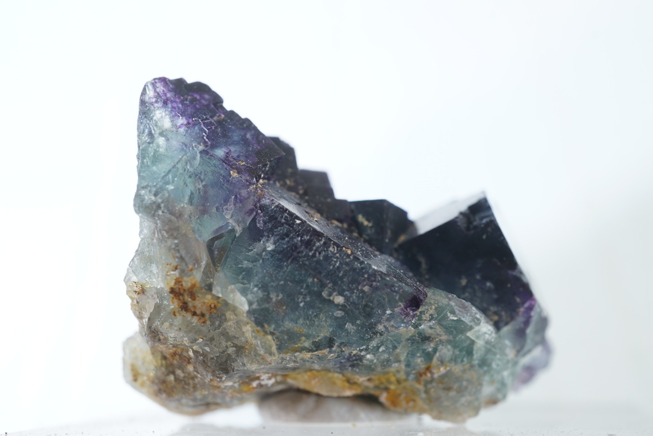 暗い紫と明るい青緑が見えるフローライトです。