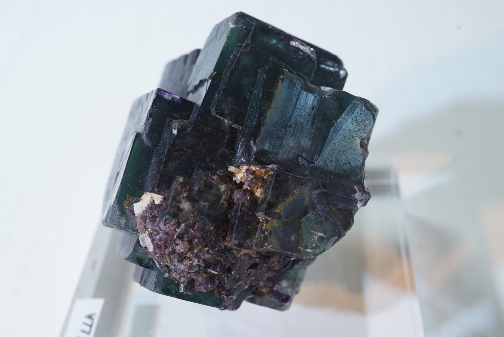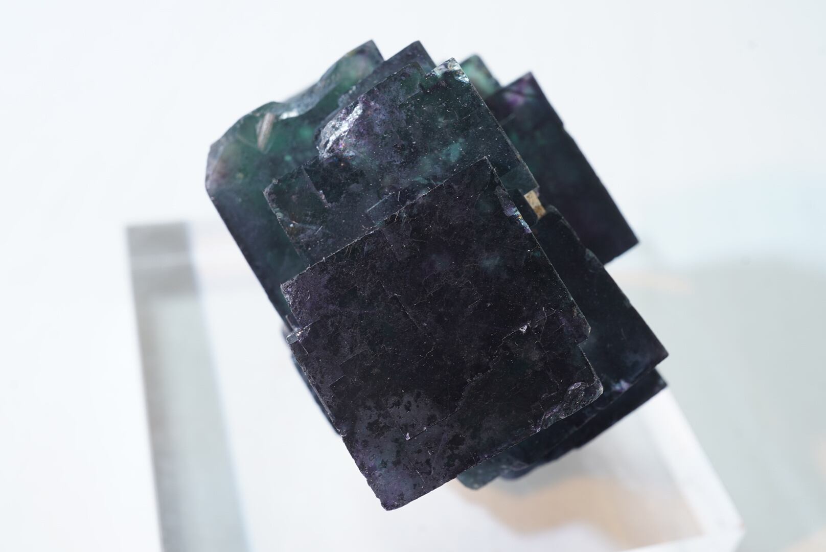 ボリューム感がたまらない、暗い紫と明るい青緑が見えるフローライトです。