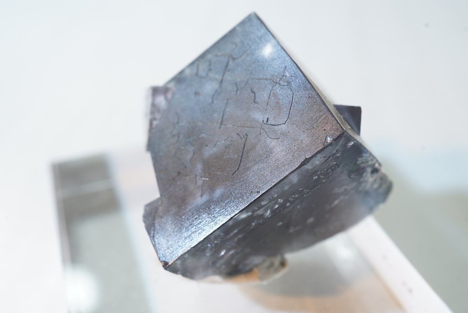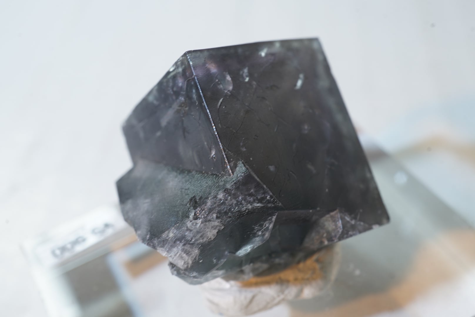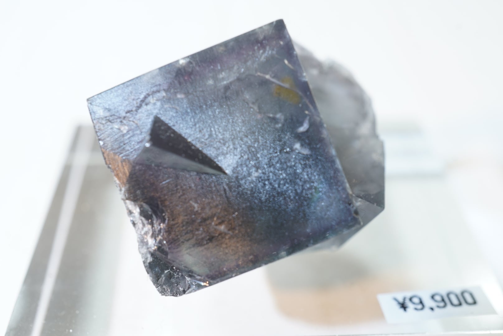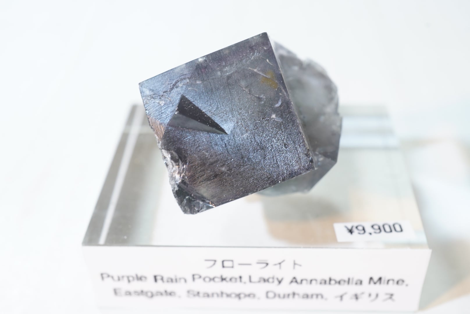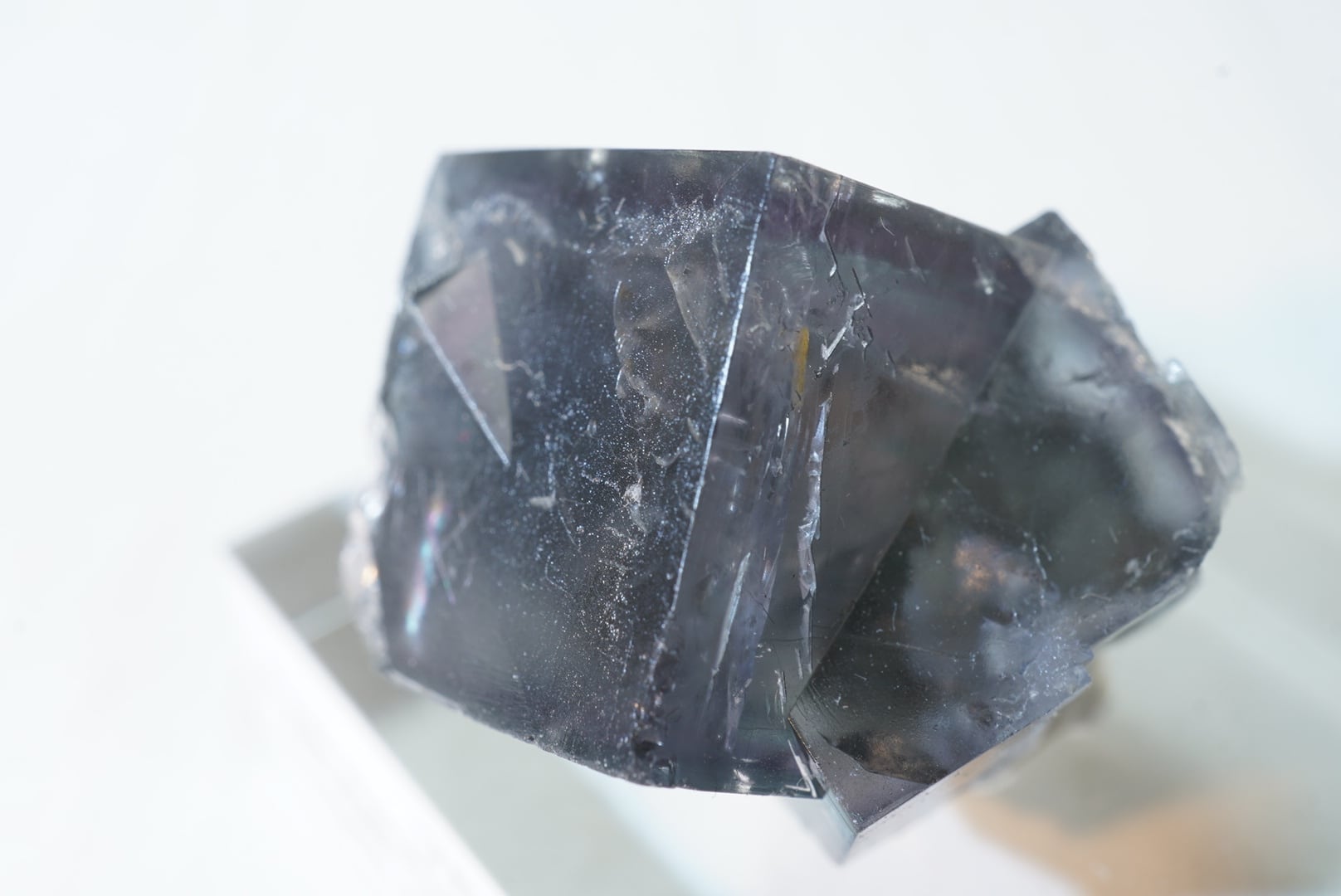 エッジの鋭い、グレーがかった青紫のフローライト結晶。