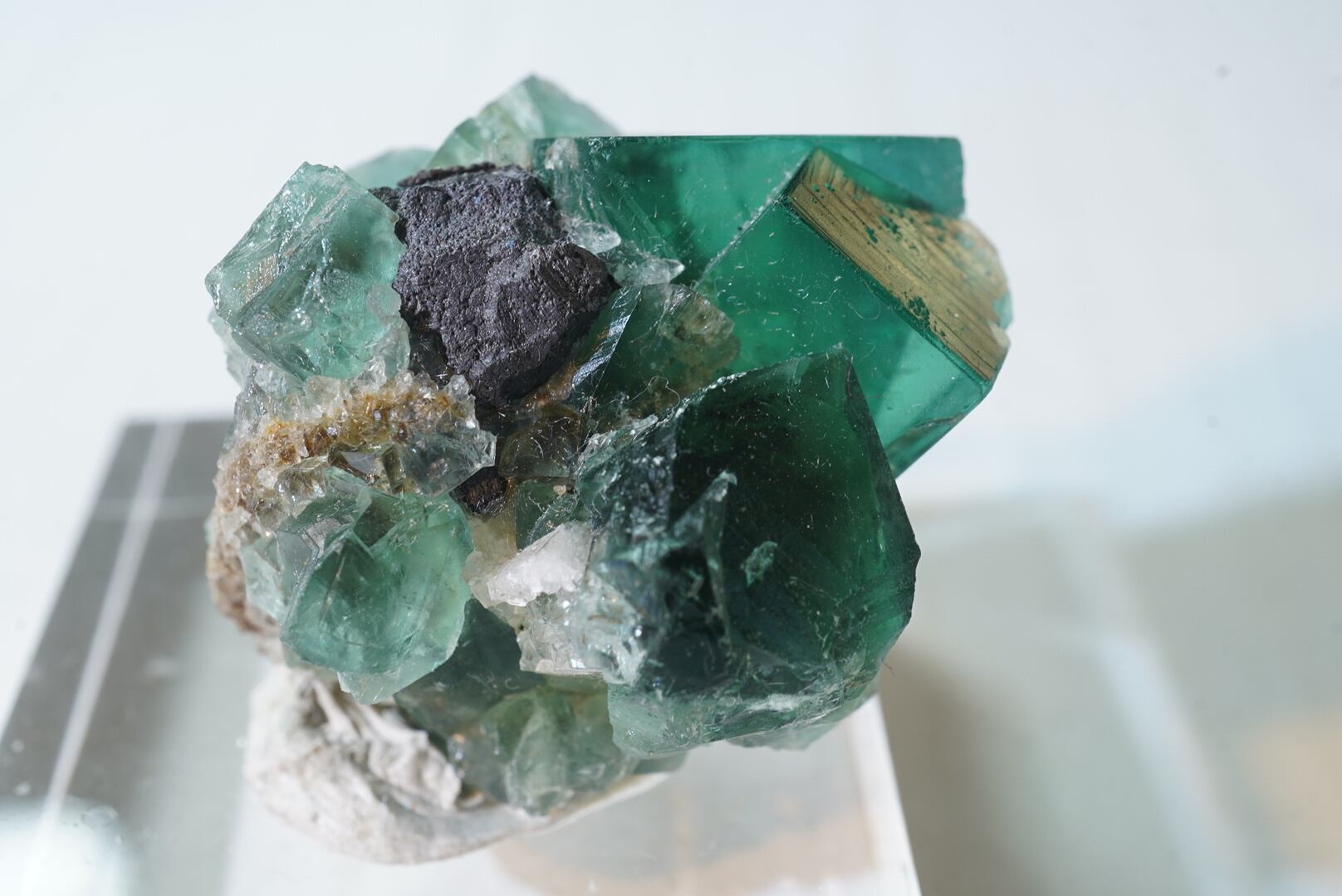 黒々としたガレナのメタリックな結晶に絡まるような、