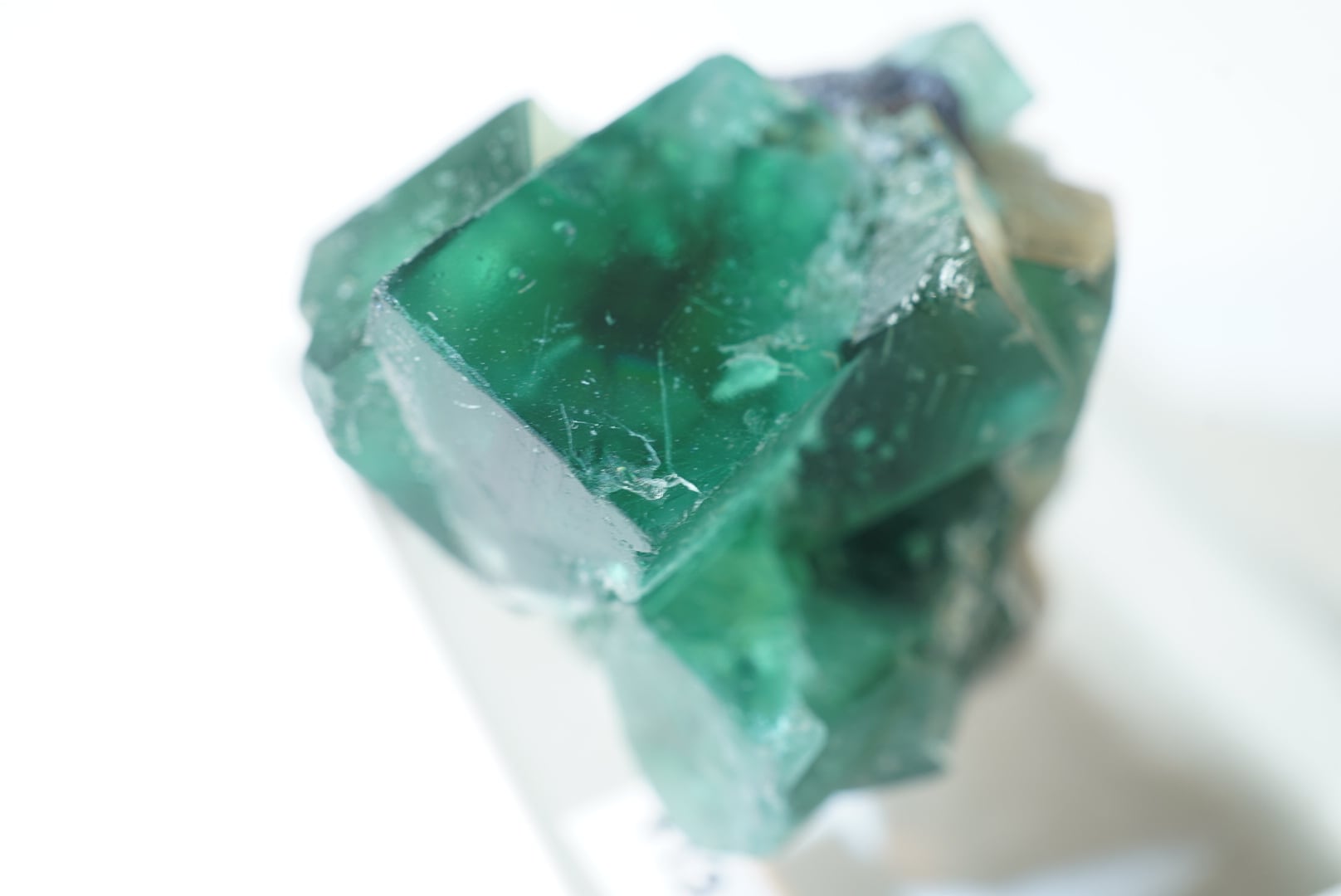 鮮やかな緑の中レモンとリーフグリーンのゾーニングが細かく混じったフローライトの結晶です。