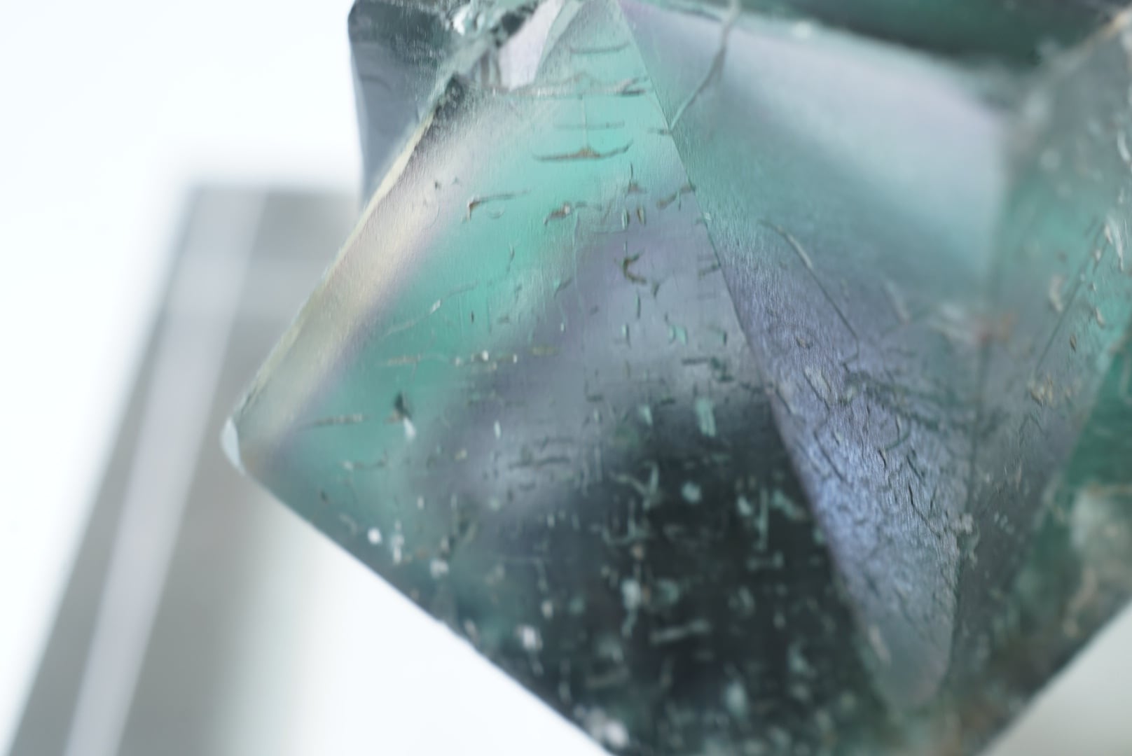 エッジに黄色や草色、ブルーにラベンダー色の細いゾーニングが非常に美しいフローライトです。