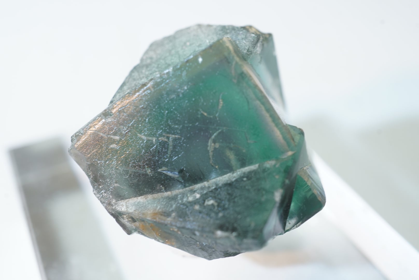 エッジに黄色や草色、ブルーにラベンダー色の細いゾーニングが非常に美しいフローライトです。