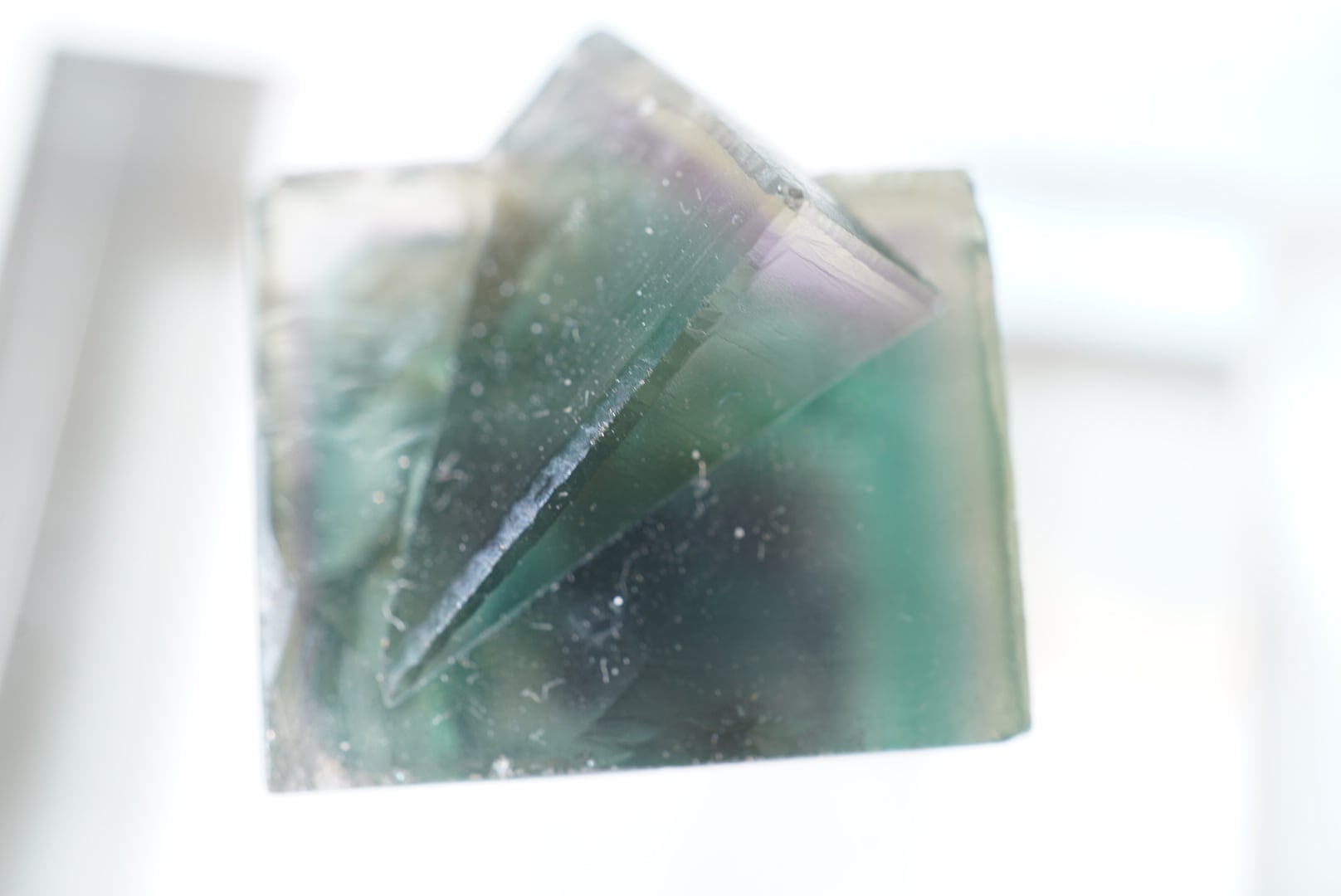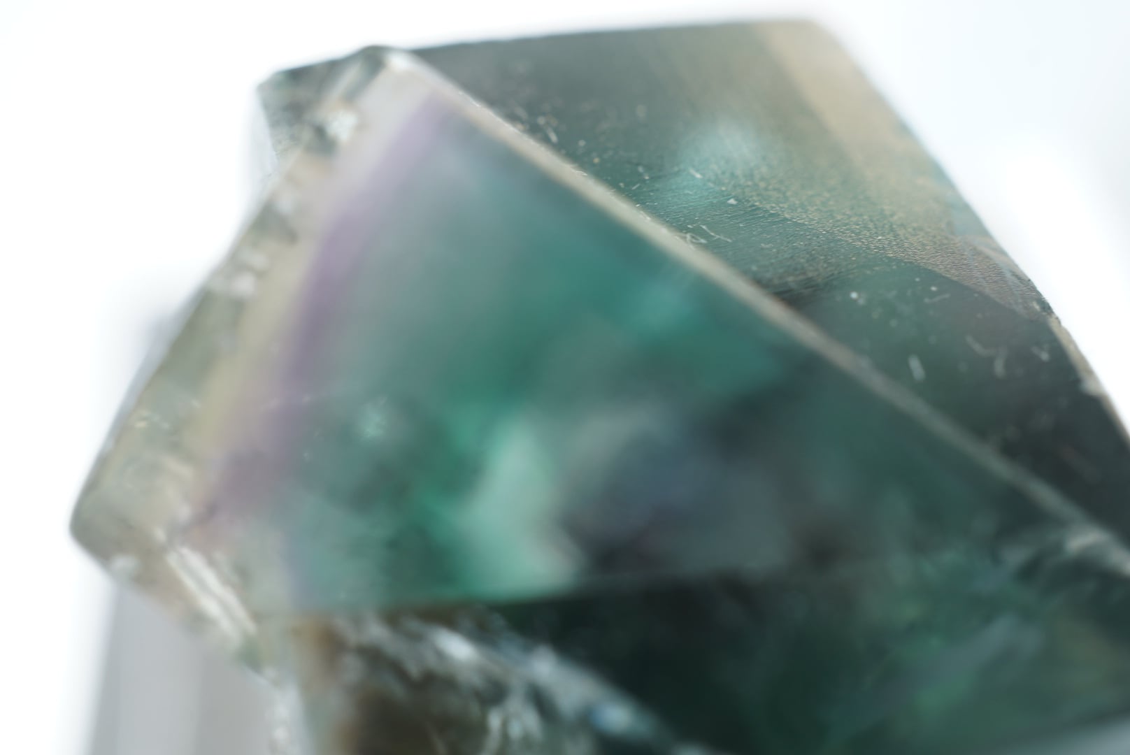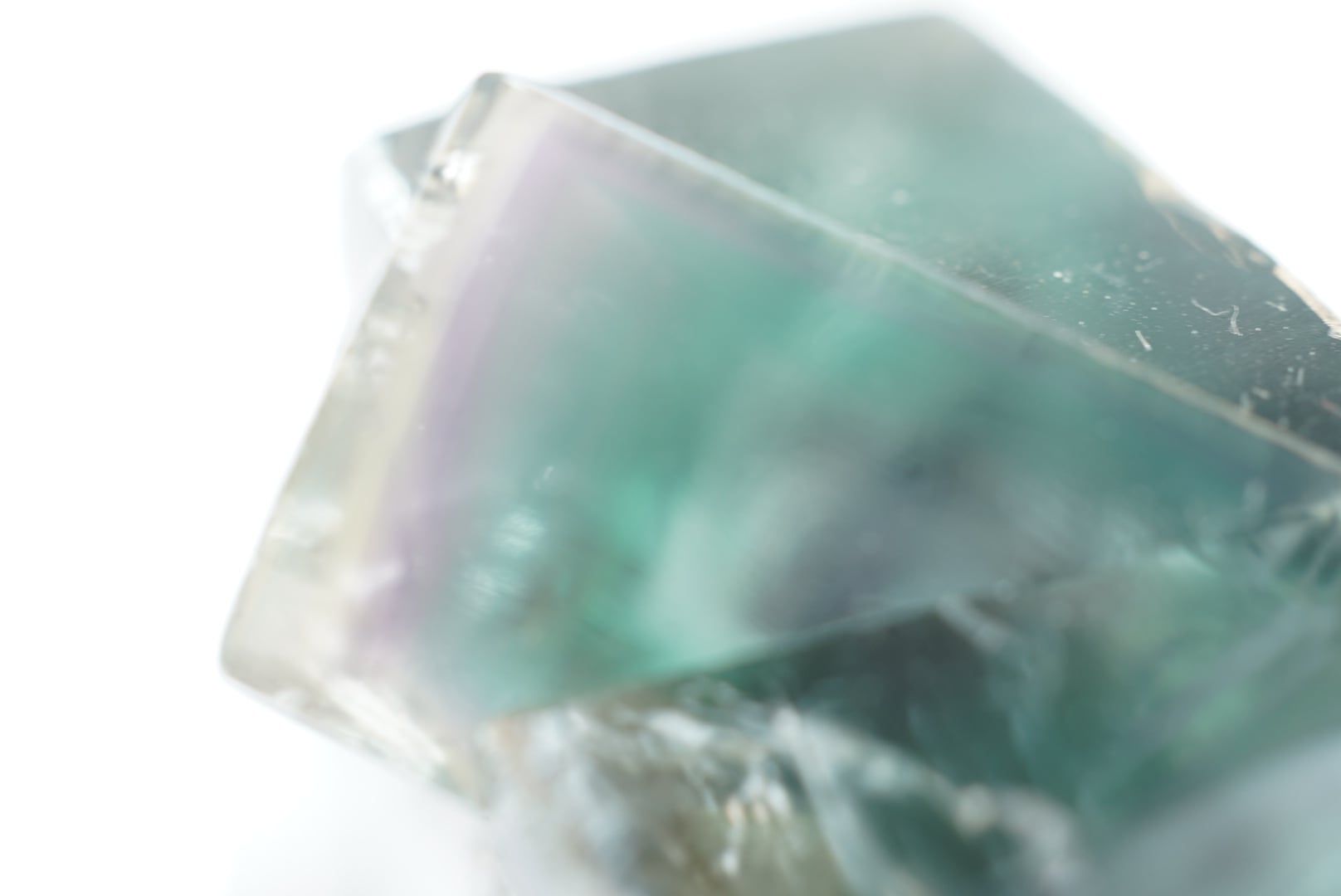 エッジに黄色や草色、ブルーにラベンダー色の細いゾーニングが非常に美しいフローライトです。