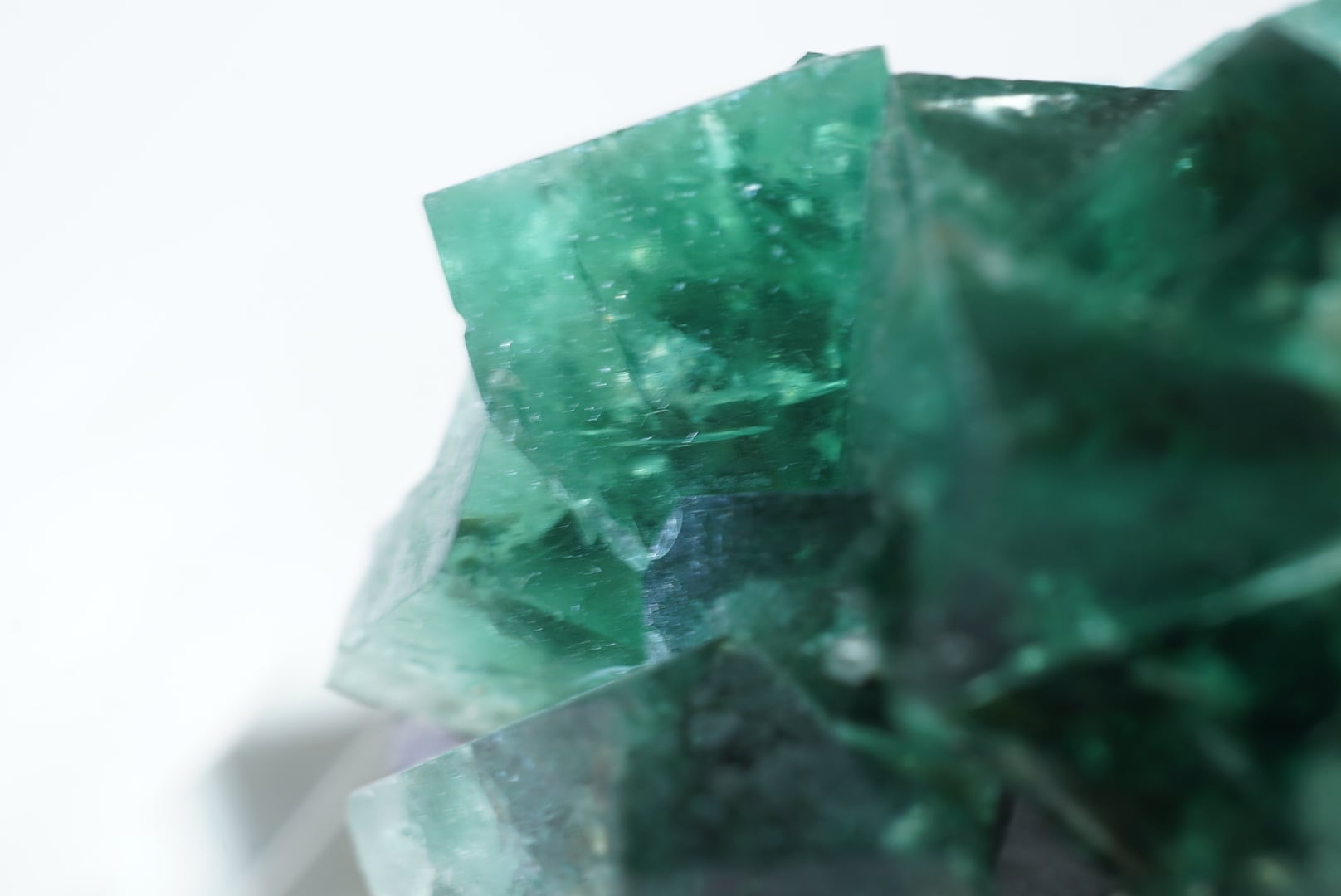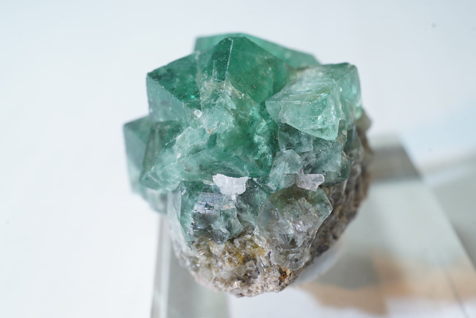 いくつかの結晶がこんもりが集まった明るい緑のフローライトのクラスターです。