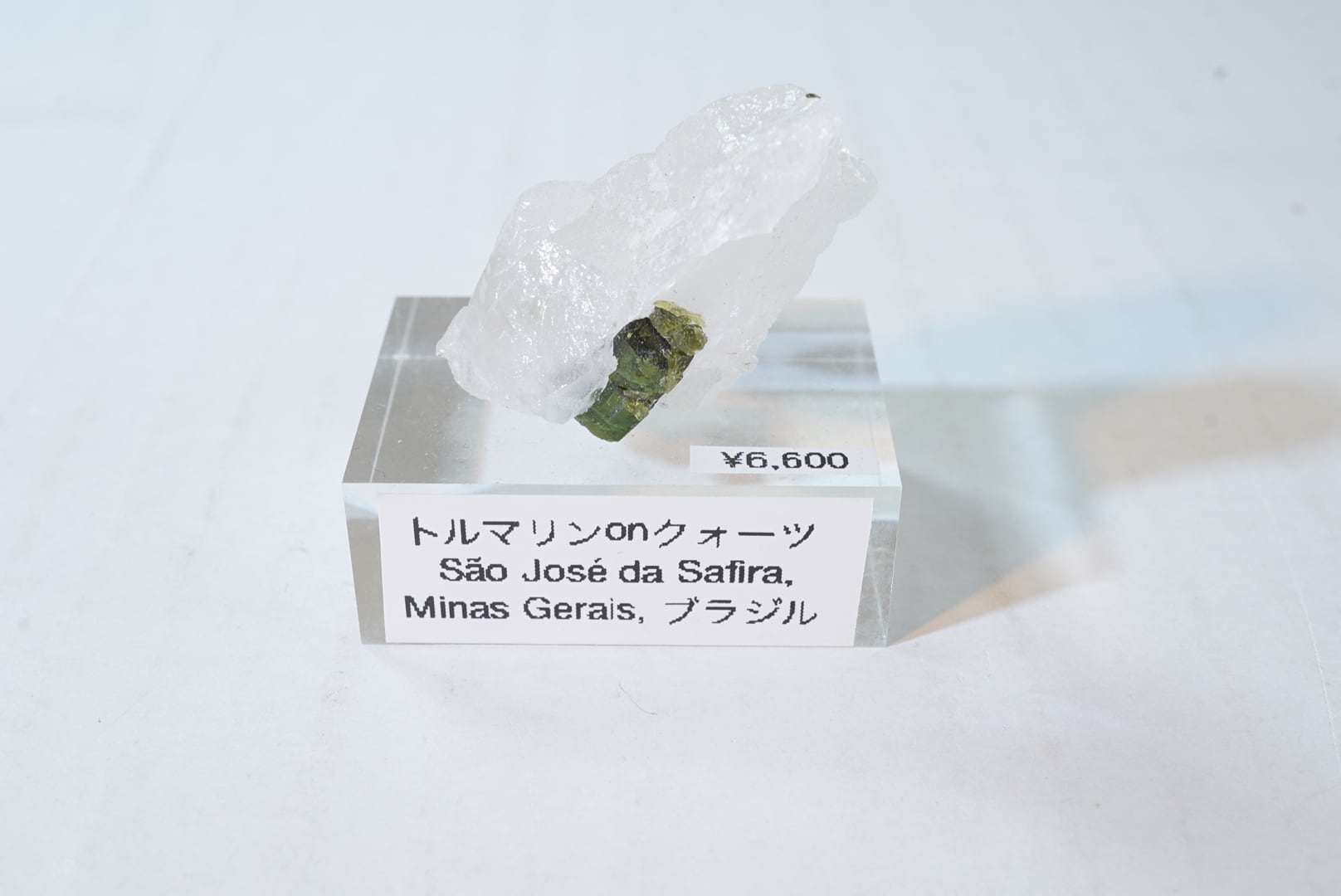 ブラジル、São José da Safiraのグリーントルマリンonクォーツ