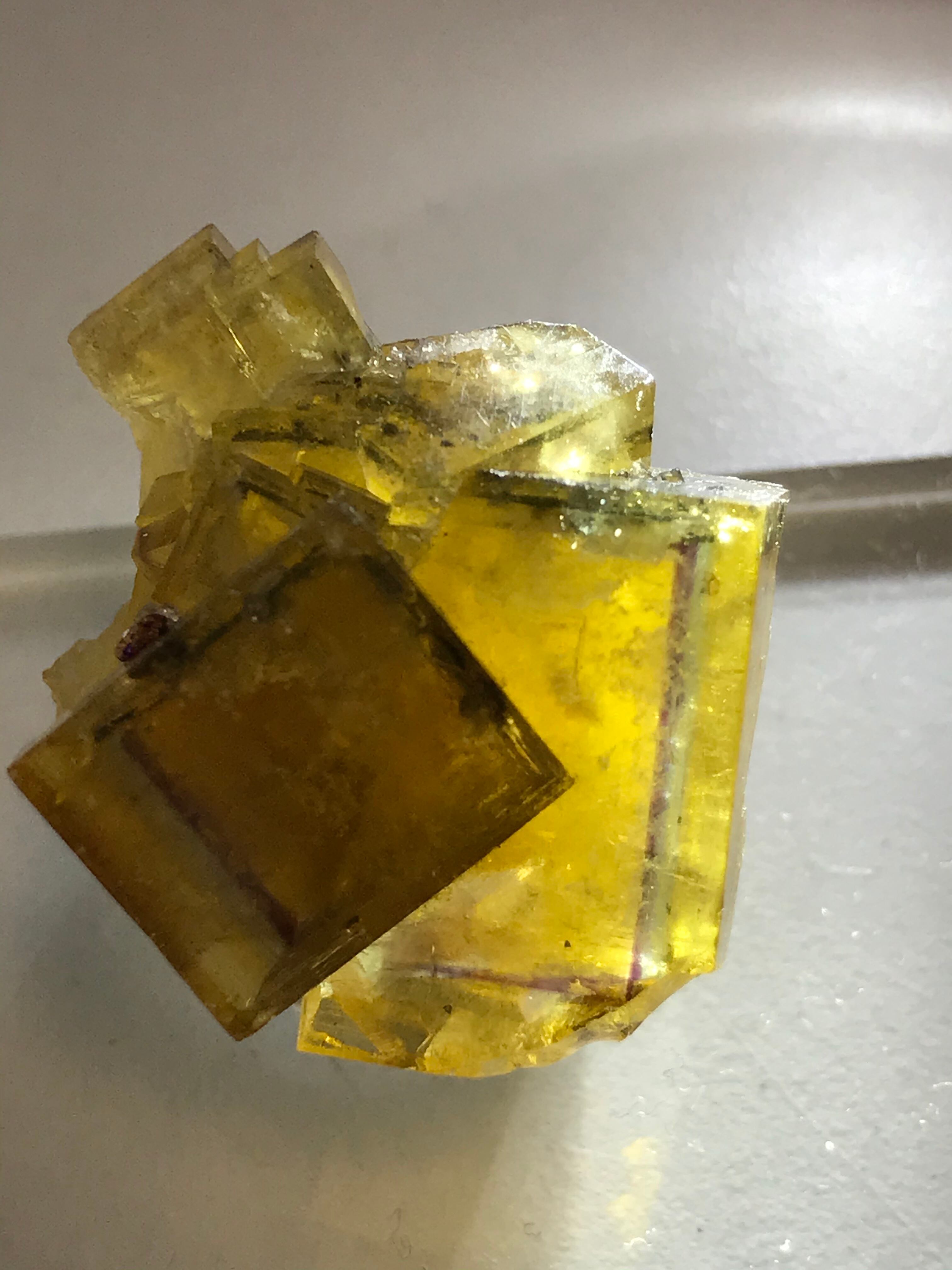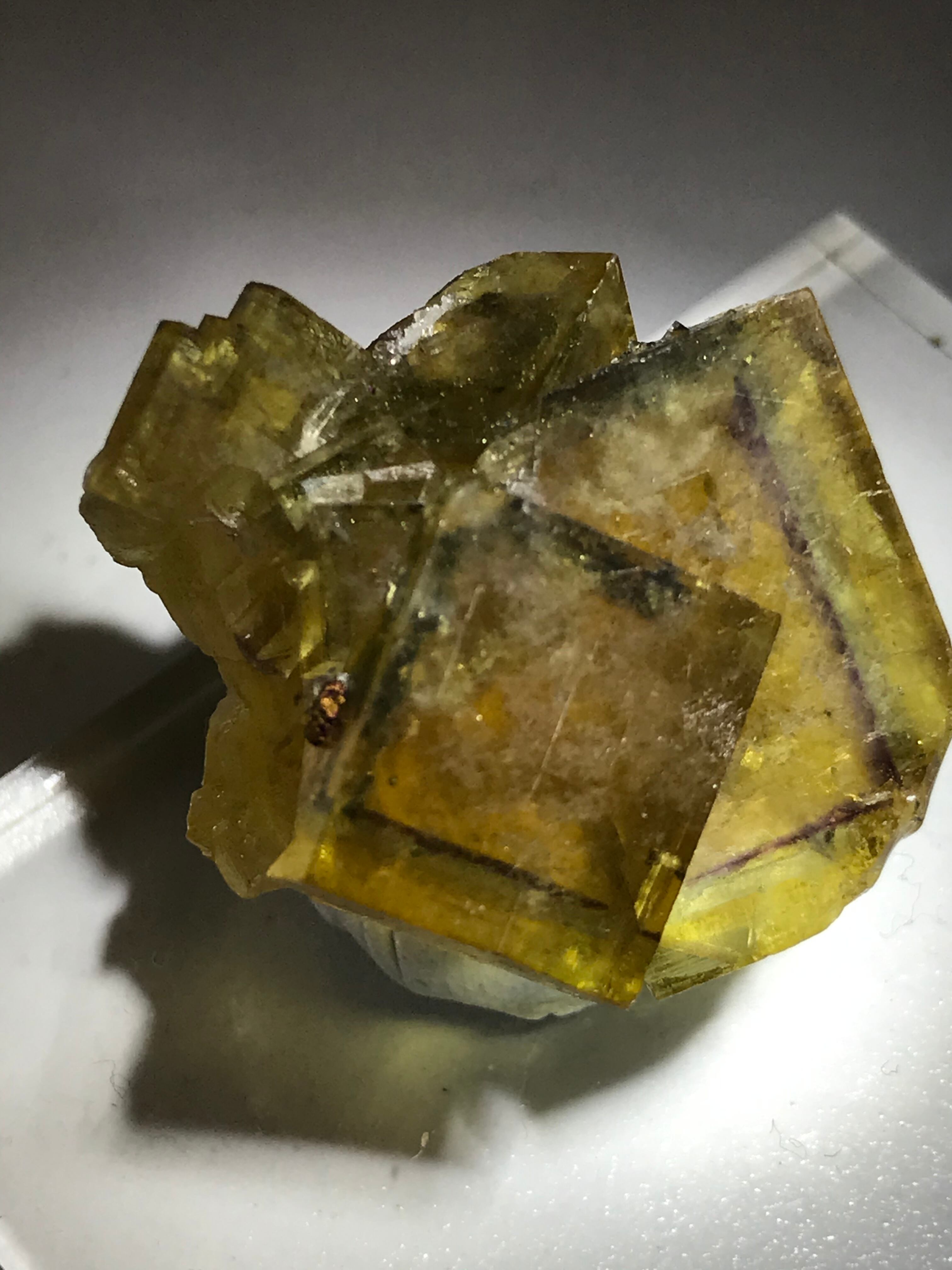 紫と水色の澄んだゾーニング(結晶構造に沿った色の帯)は