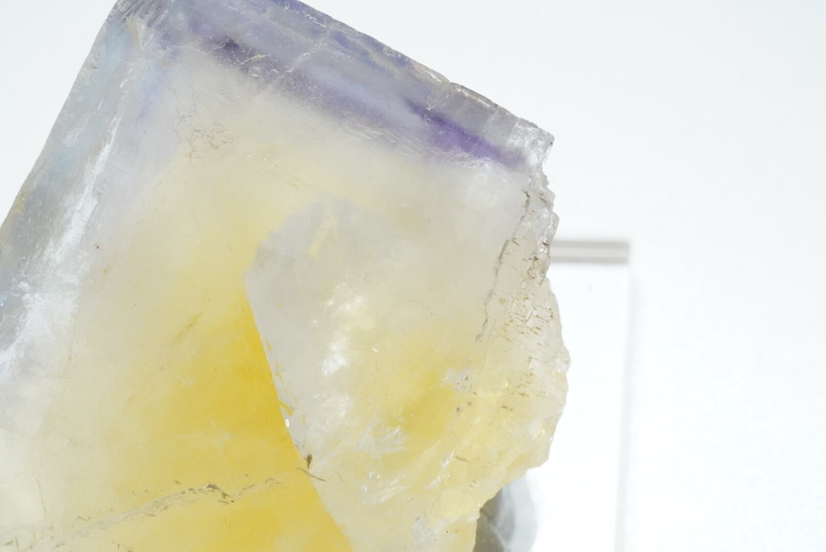 こちらはサニーイエローに水色と紫のゾーニングが水彩画のように混ざって見える美しい結晶です。