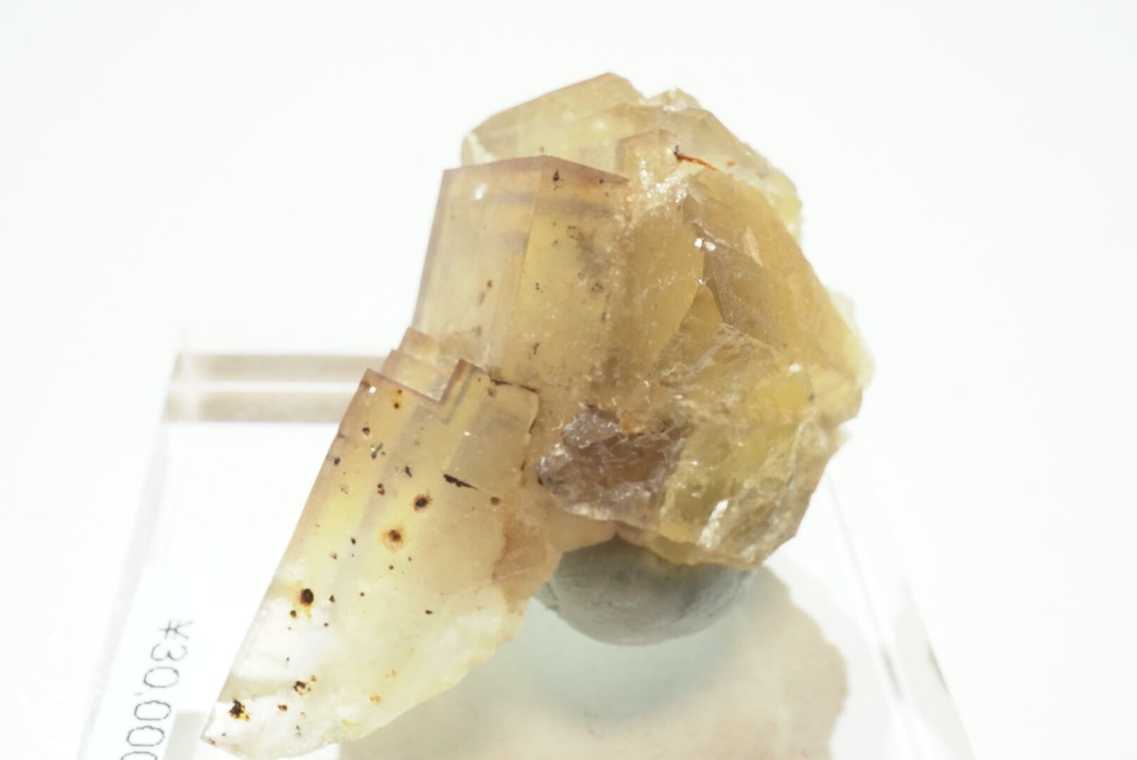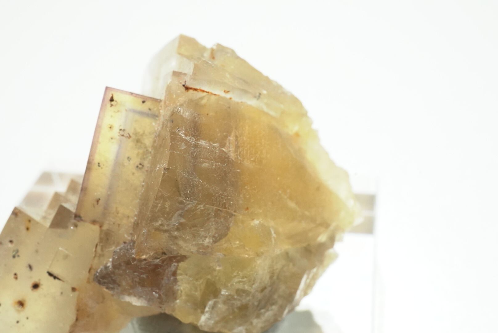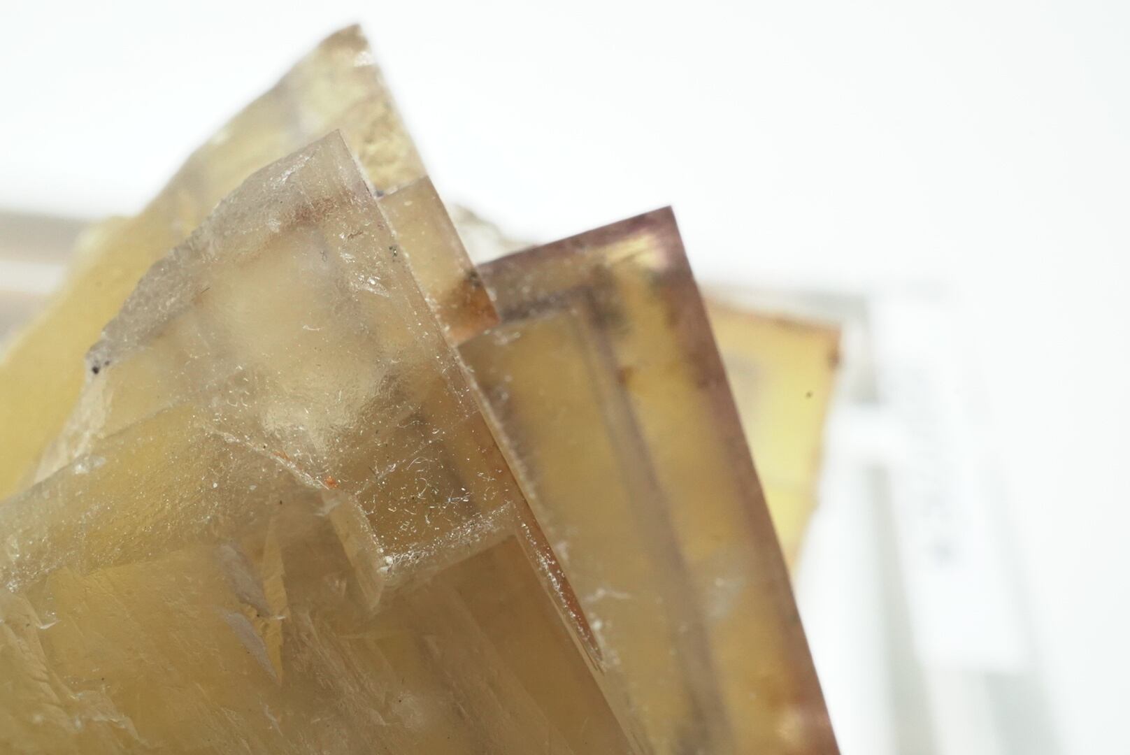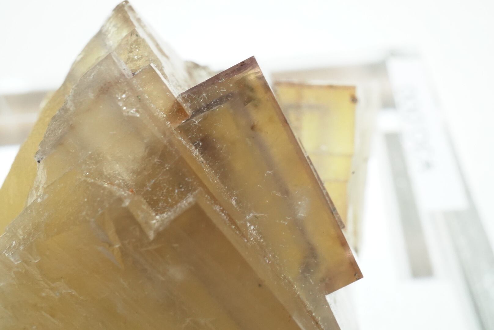 ベージュがかった黄色のフローライトに、細い紫のゾーニングが入った不思議な色味。