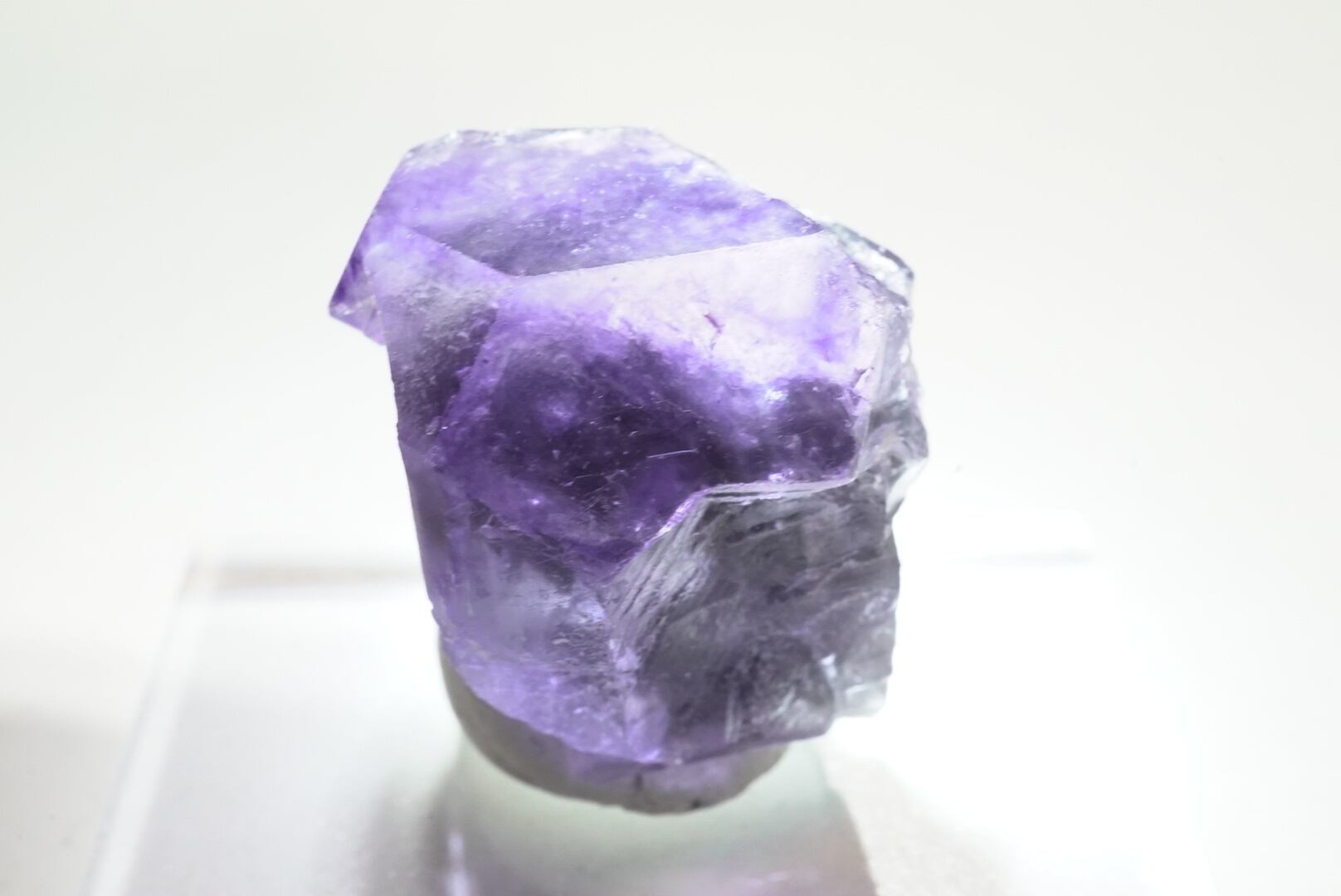 紫とコアの部分の暗い緑ぽい色が面白い結晶です。