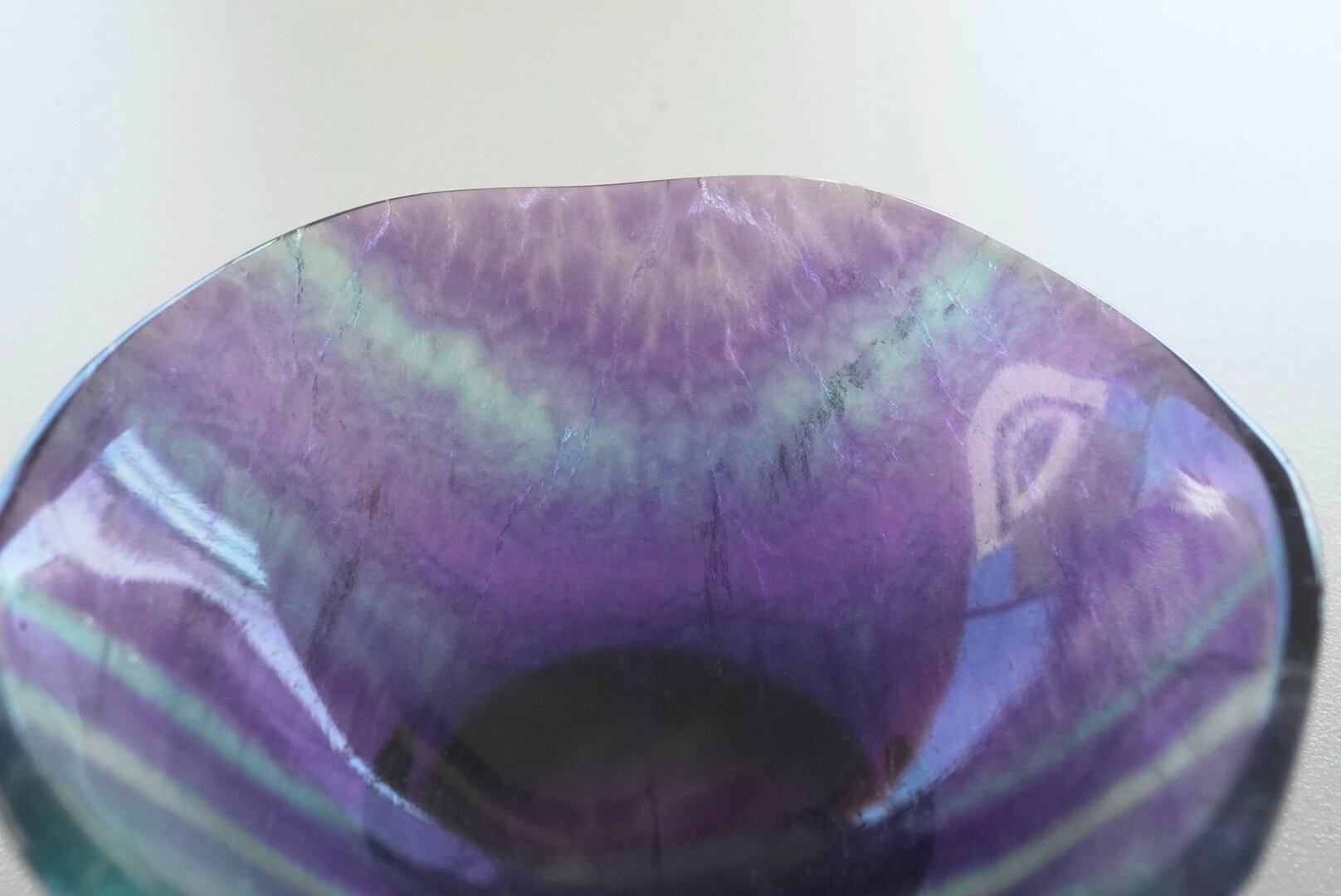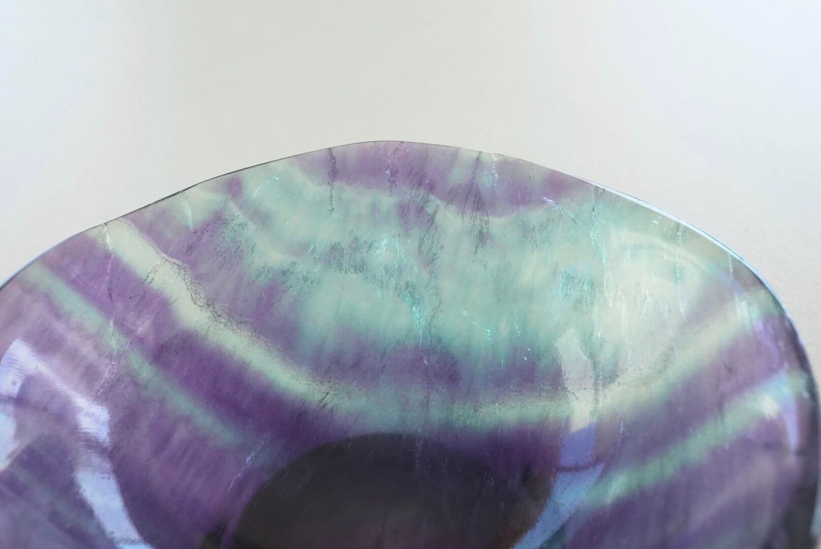 フローライトはガラスより硬度が低いので、