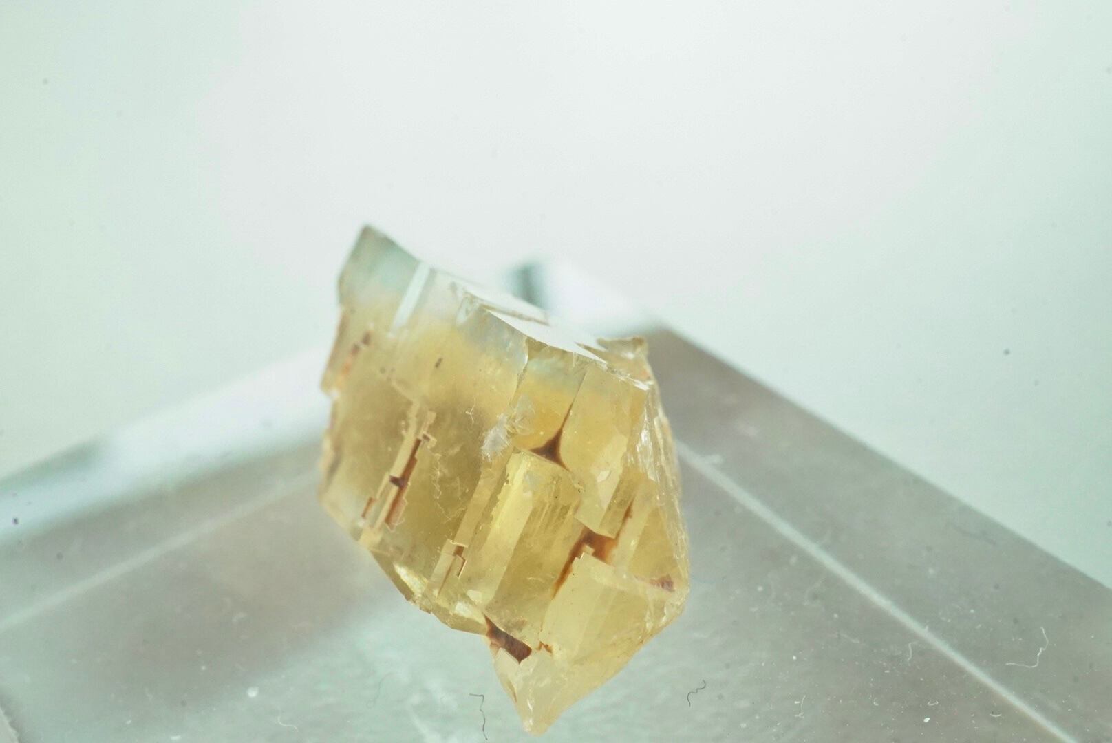 破断した形のクリアとレモンイエローの結晶。