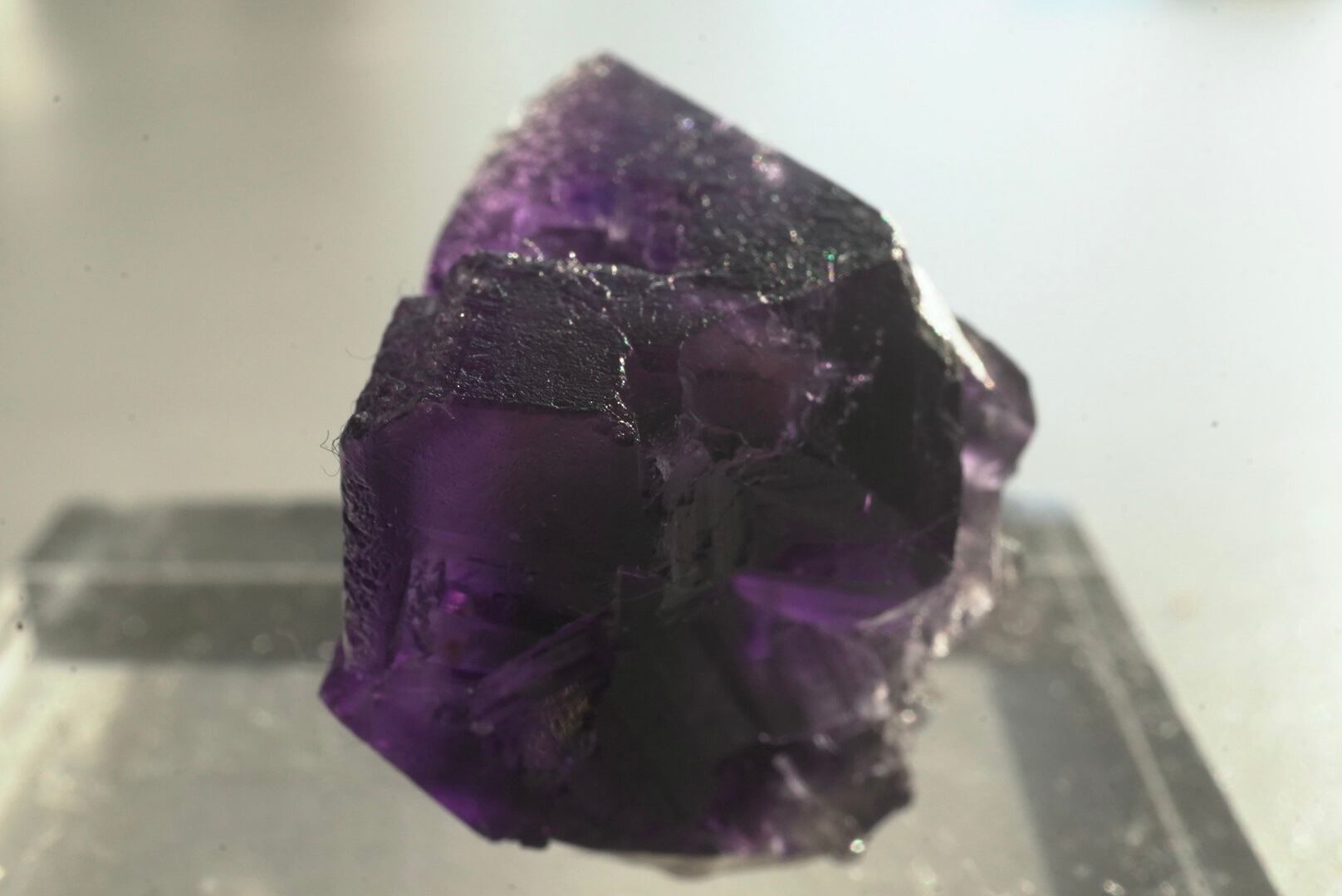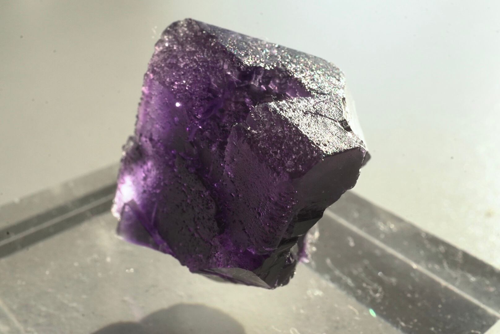 ディープカラーと表面の蝕像が素敵な紫のフローライト。