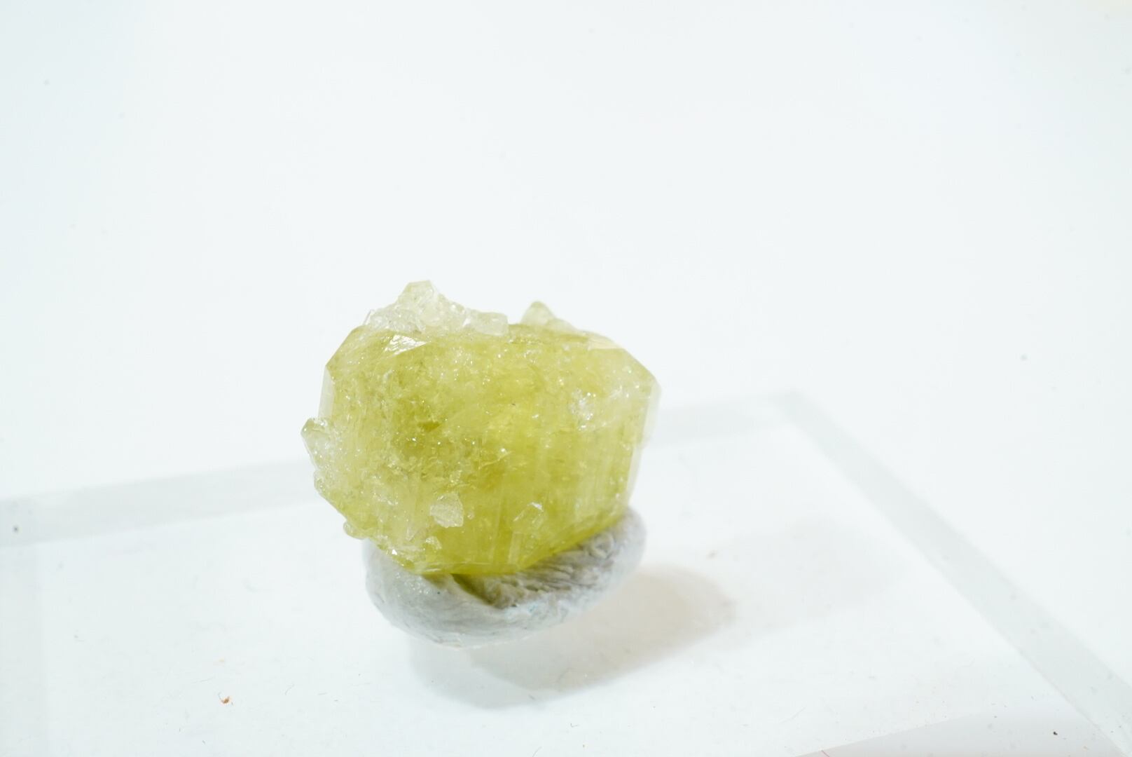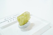 細かい結晶が砂糖をまぶしたような黄緑色の結晶。