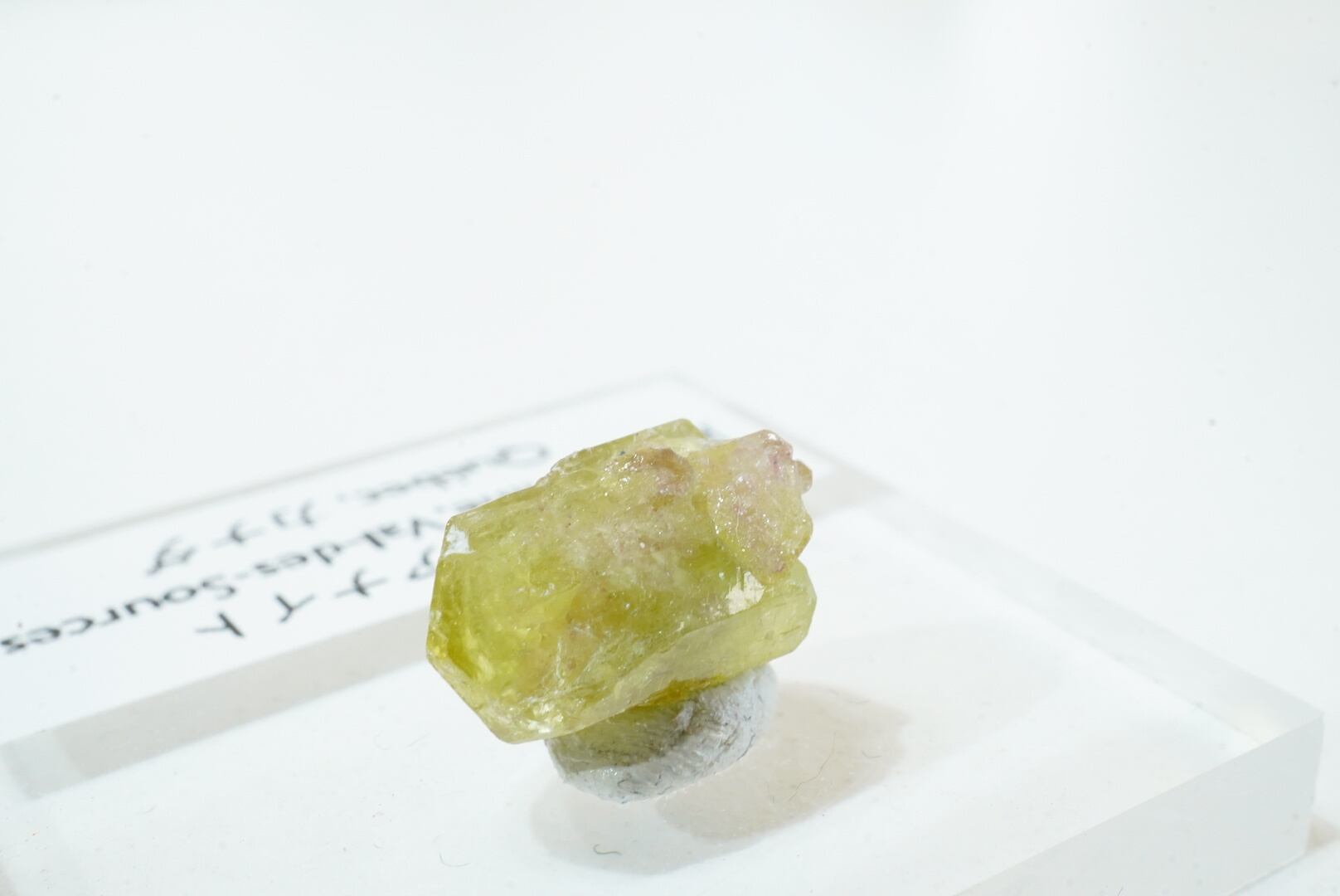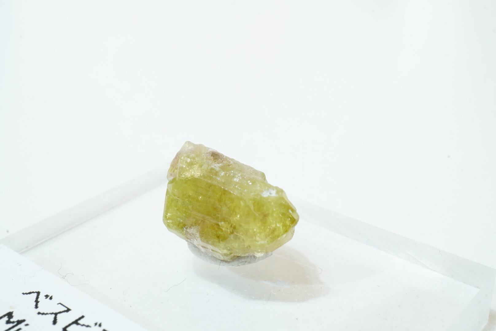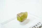 中央がうっすら赤みのある、黄緑色の両錐結晶。