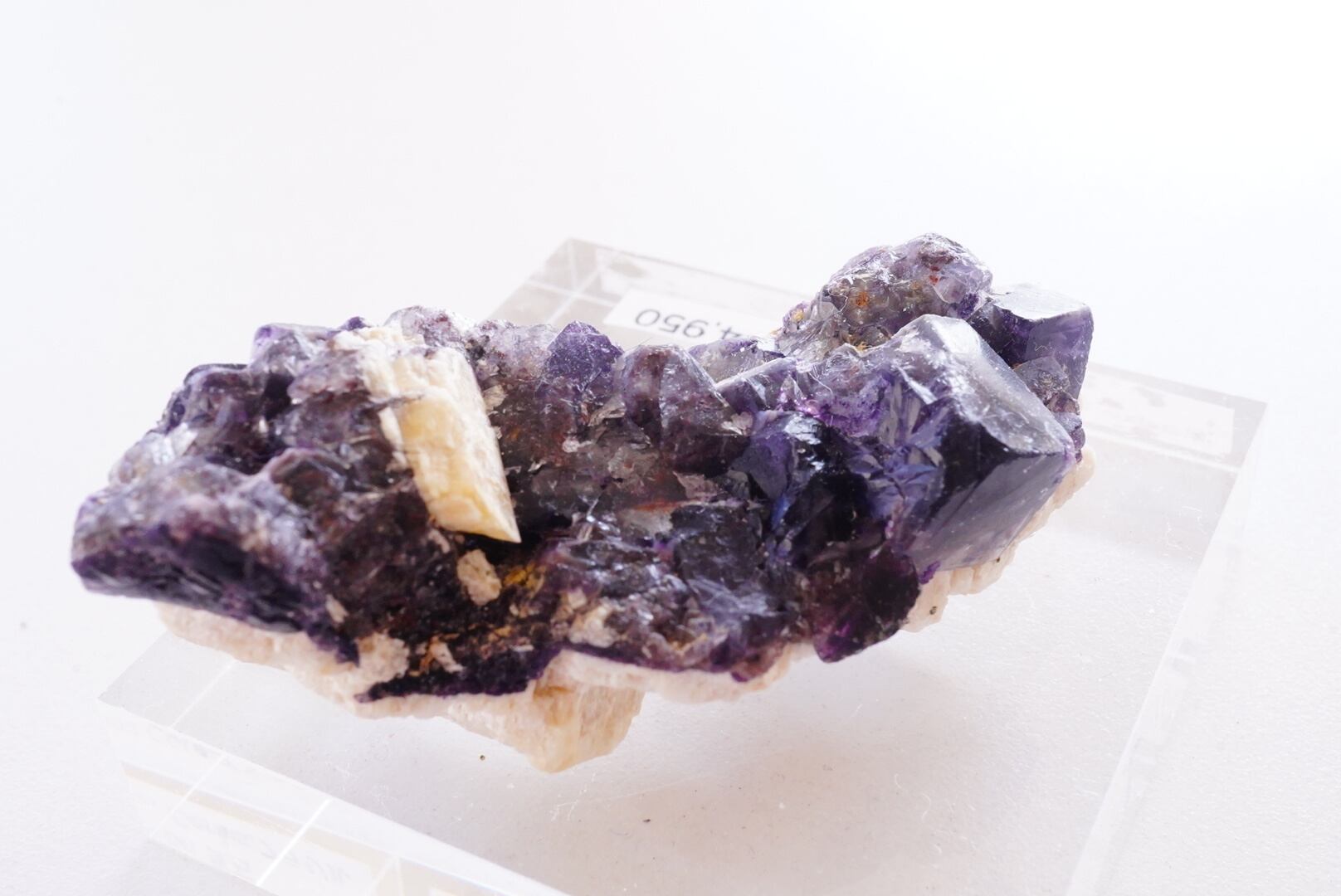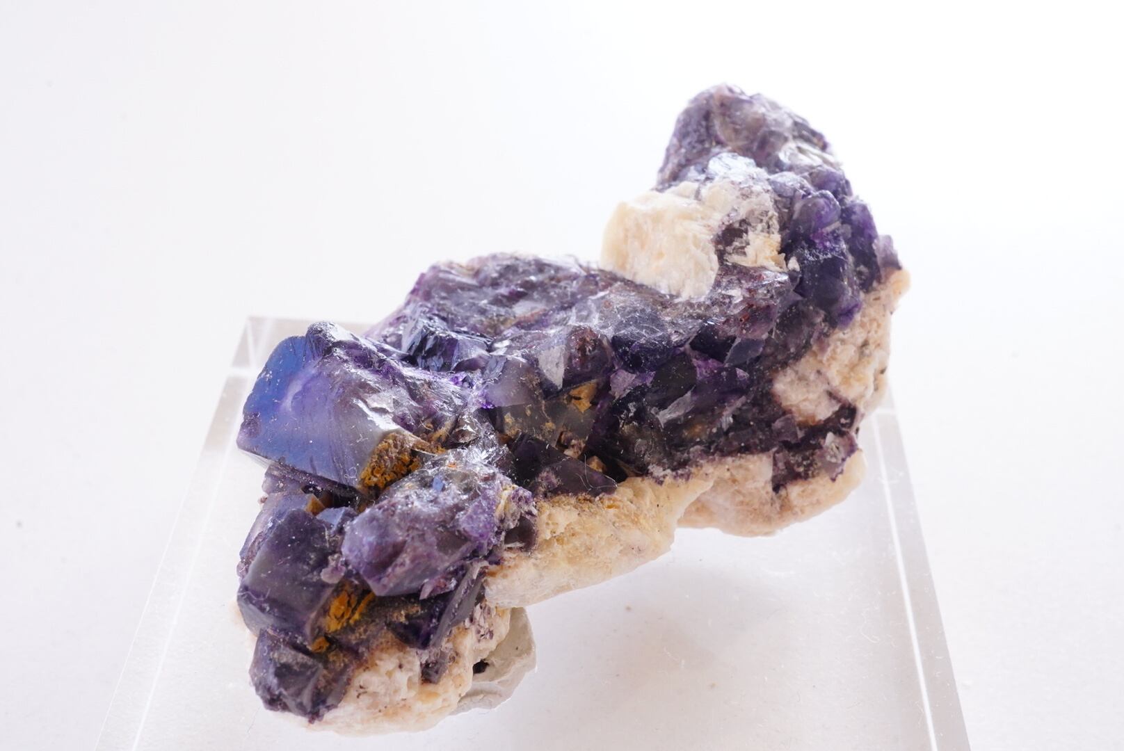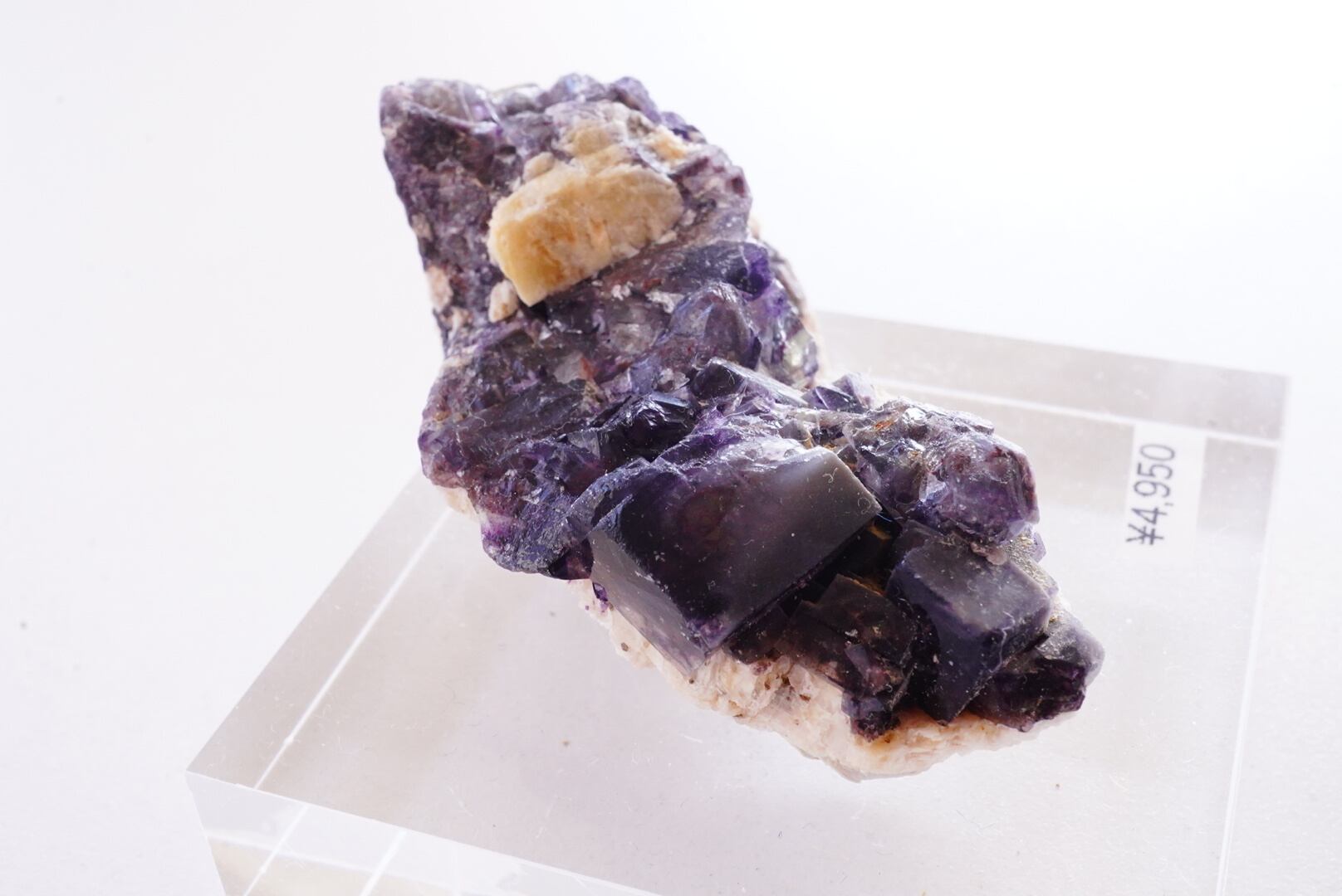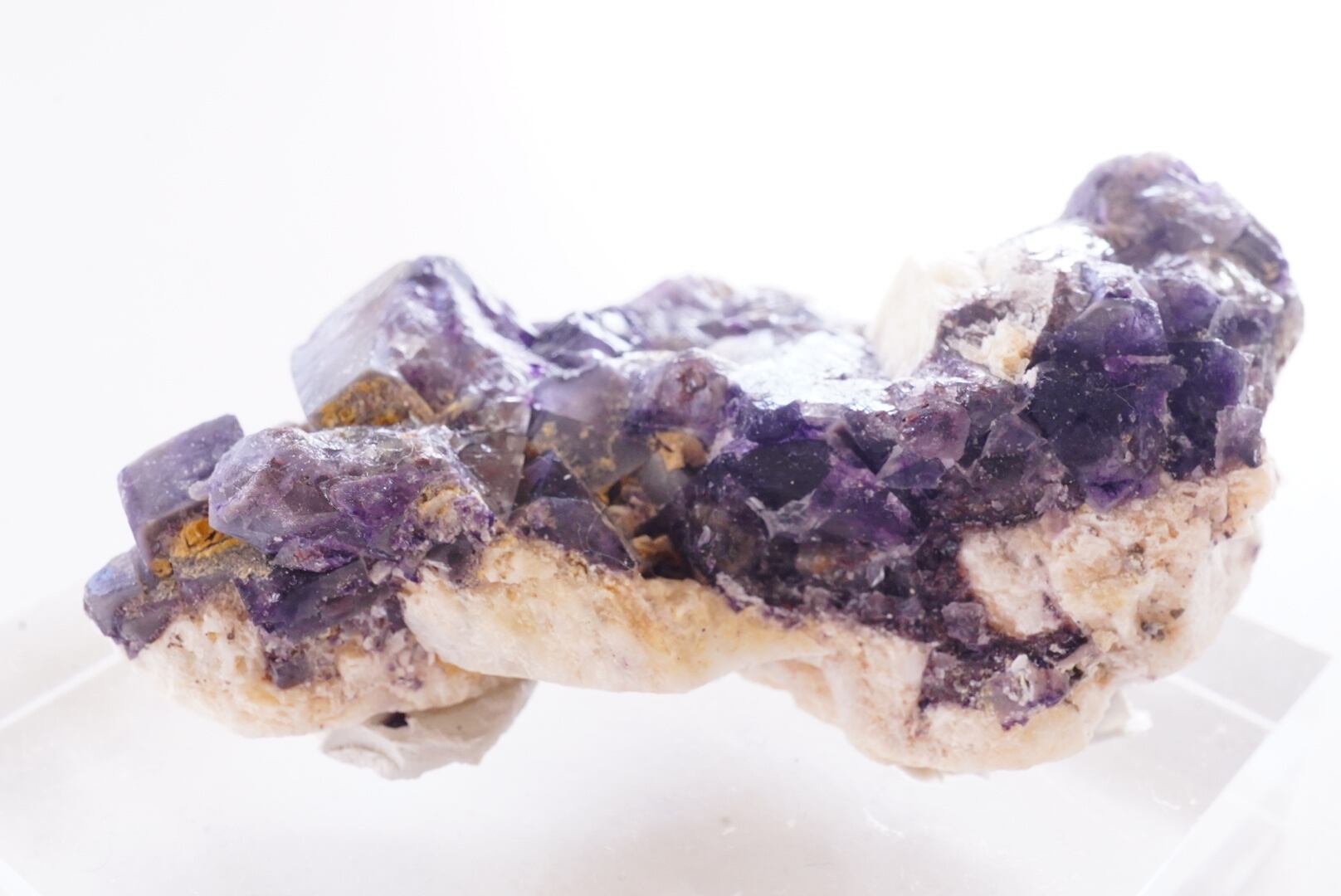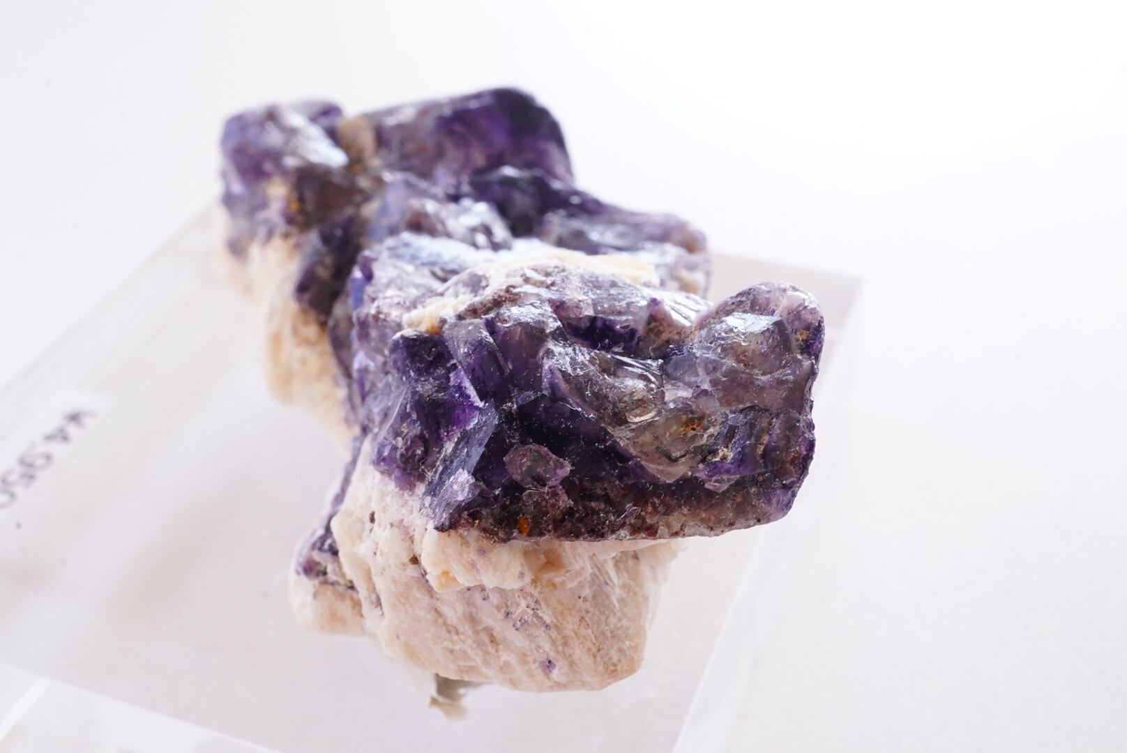 クリアのゾーニングがあり、フローライトの結晶の中に長石が詰まっているのがのぞけます。