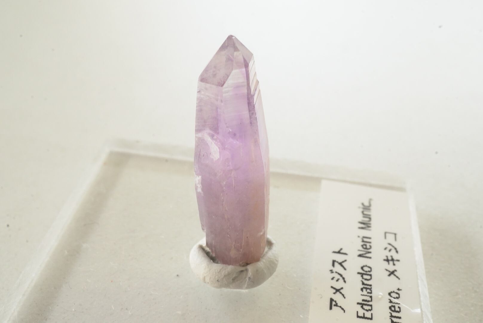 照りのある表面、透明で明るめの色のアメジスト。