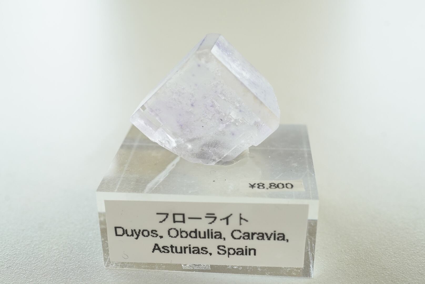 ほんのりラベンダーのニュアンスの、非常に透明なフローライトの結晶です。