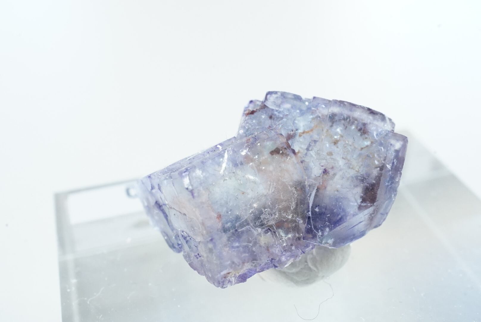 もやもやとした淡い緑の部分や細かい紫のゾーニングが見える美しい結晶です。