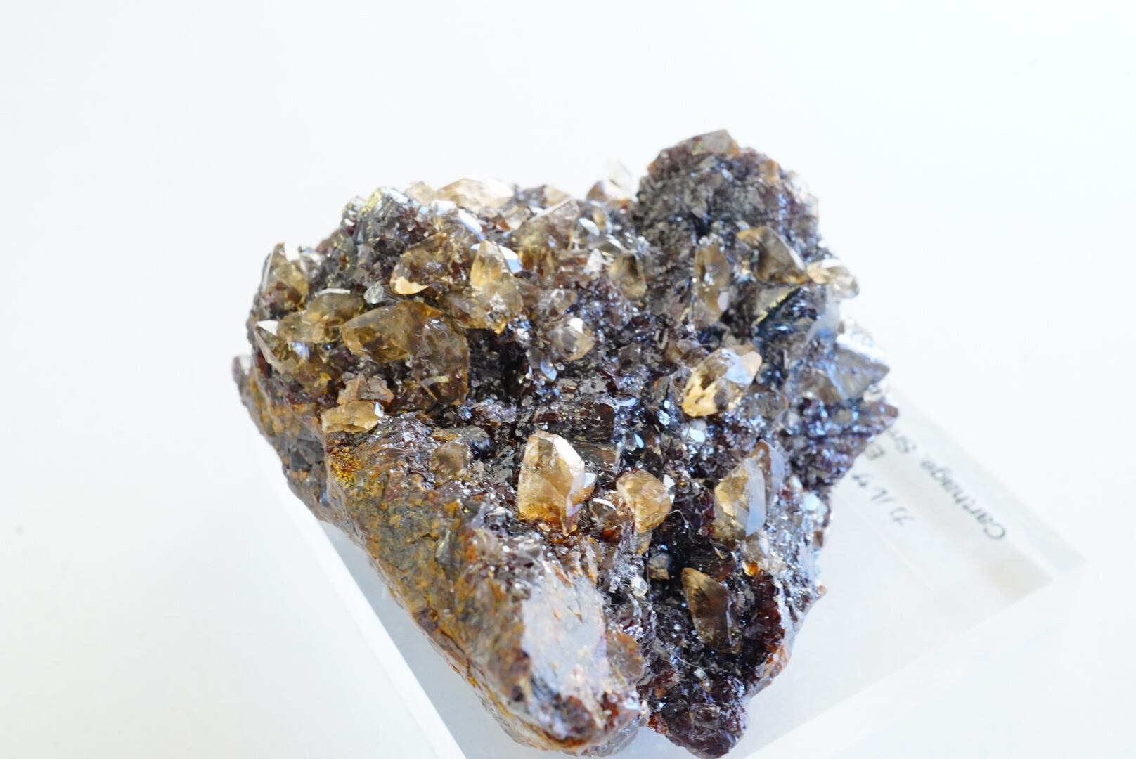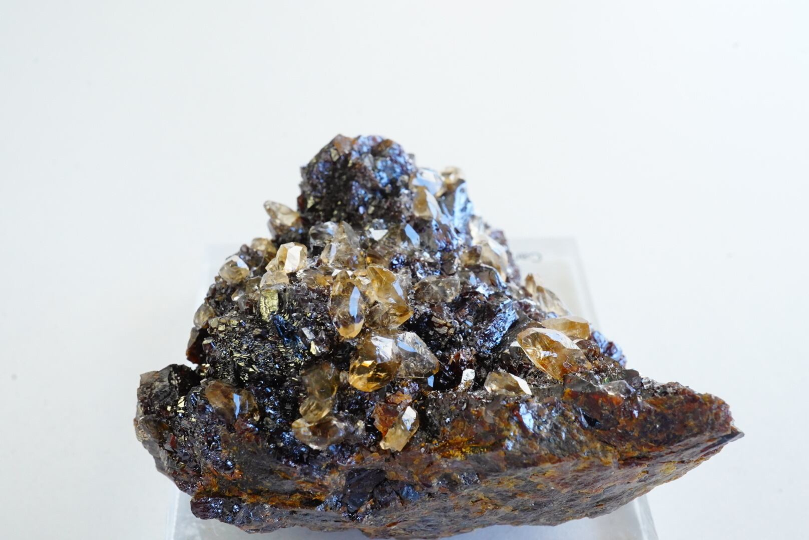 スファレライトの結晶のザクザクツヤツヤの上にまぶされた、