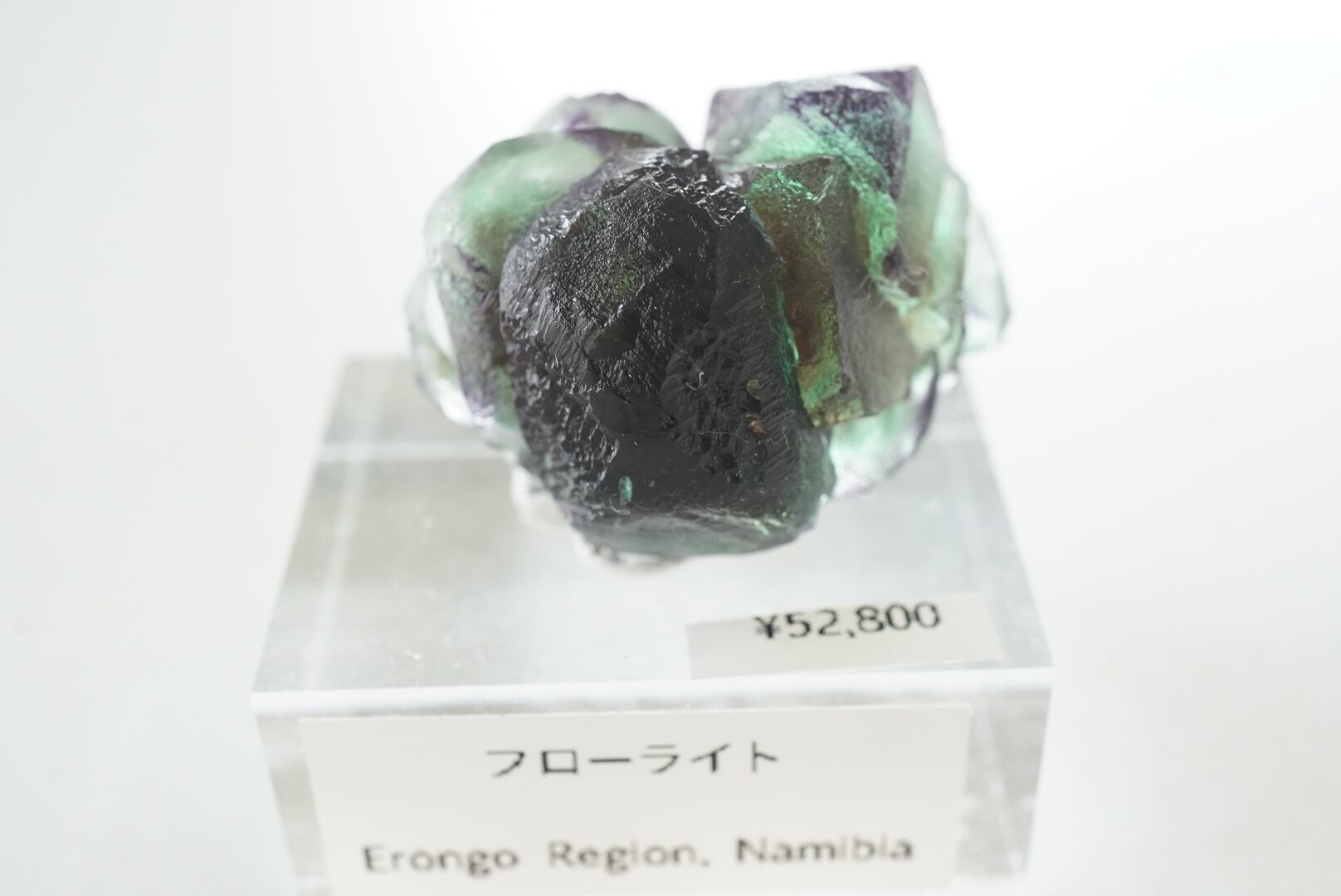 深い緑、鮮やかな緑、コアの部分のもやもやした濃い色が特徴のコロンとした結晶を
