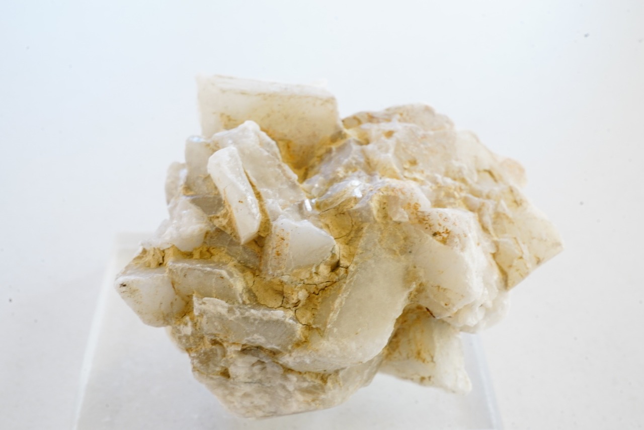 菱形の白い結晶がぎゅっと固まったような標本です。