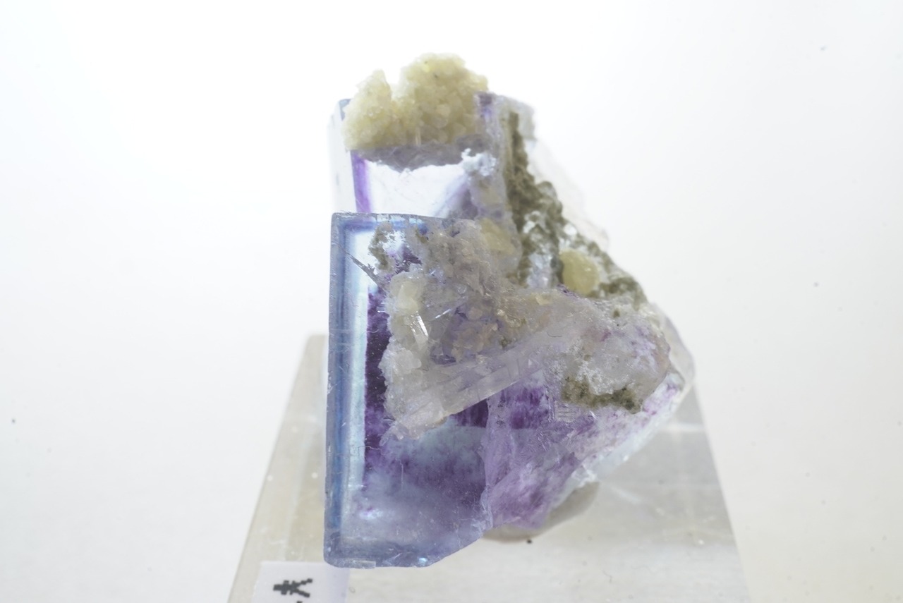 表面には雲母やカルサイトのような共生鉱物があります。