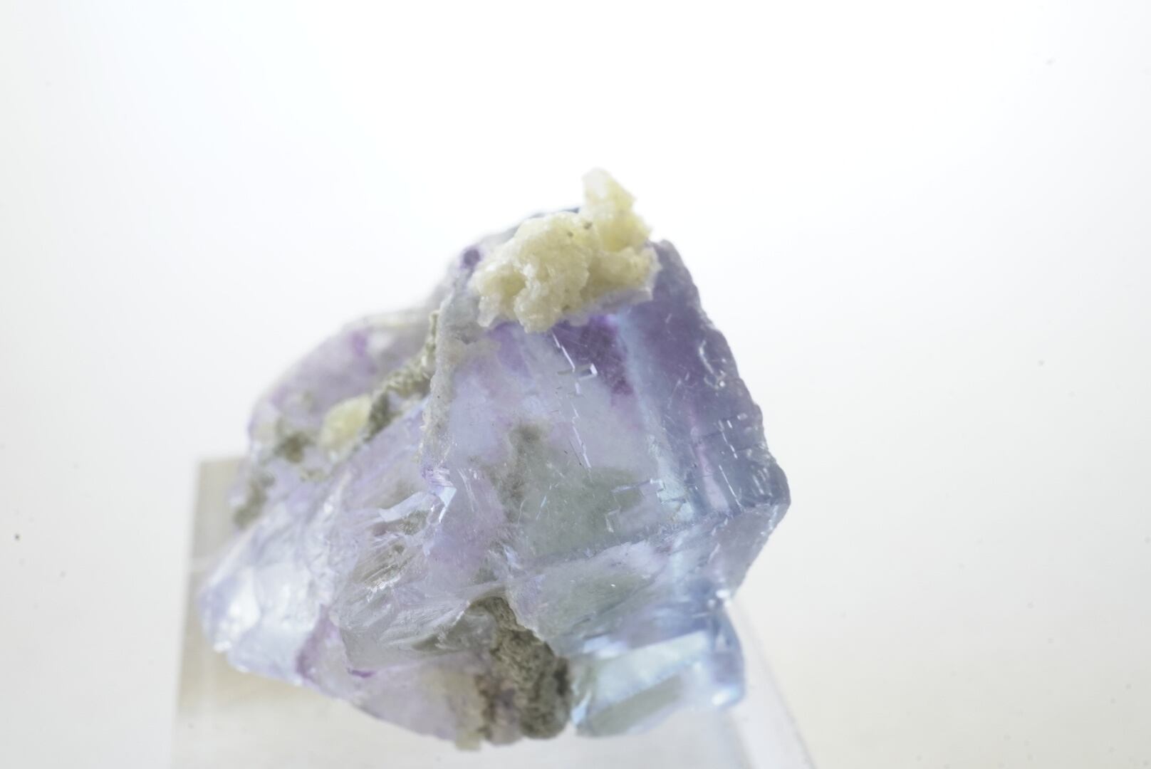 ゼリーのようなフローライトの藤水色のキューブ状結晶です。