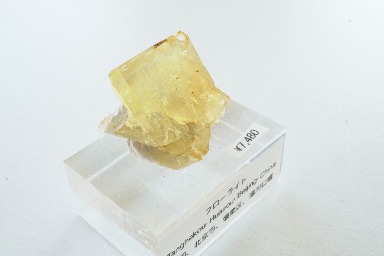 ほわっと濃淡のある黄色のフローライトの結晶。