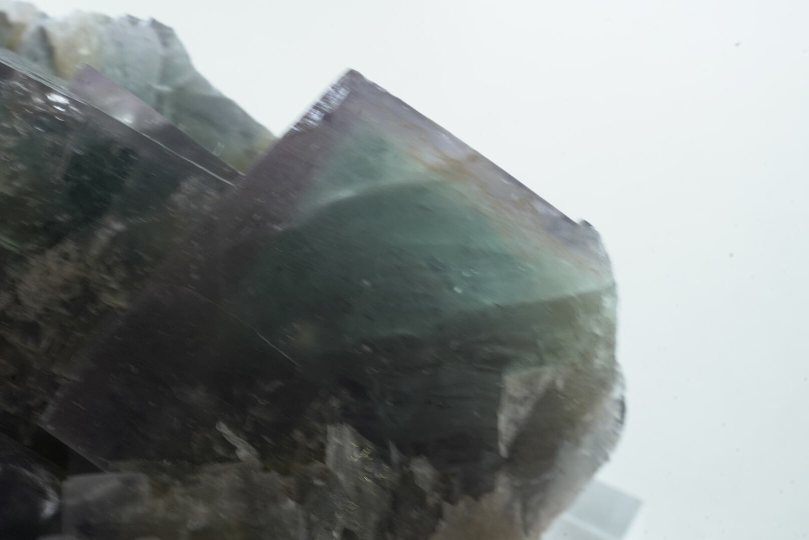 紫のエッジが美しいインディゴのような彩度の低い青緑のフローライト。