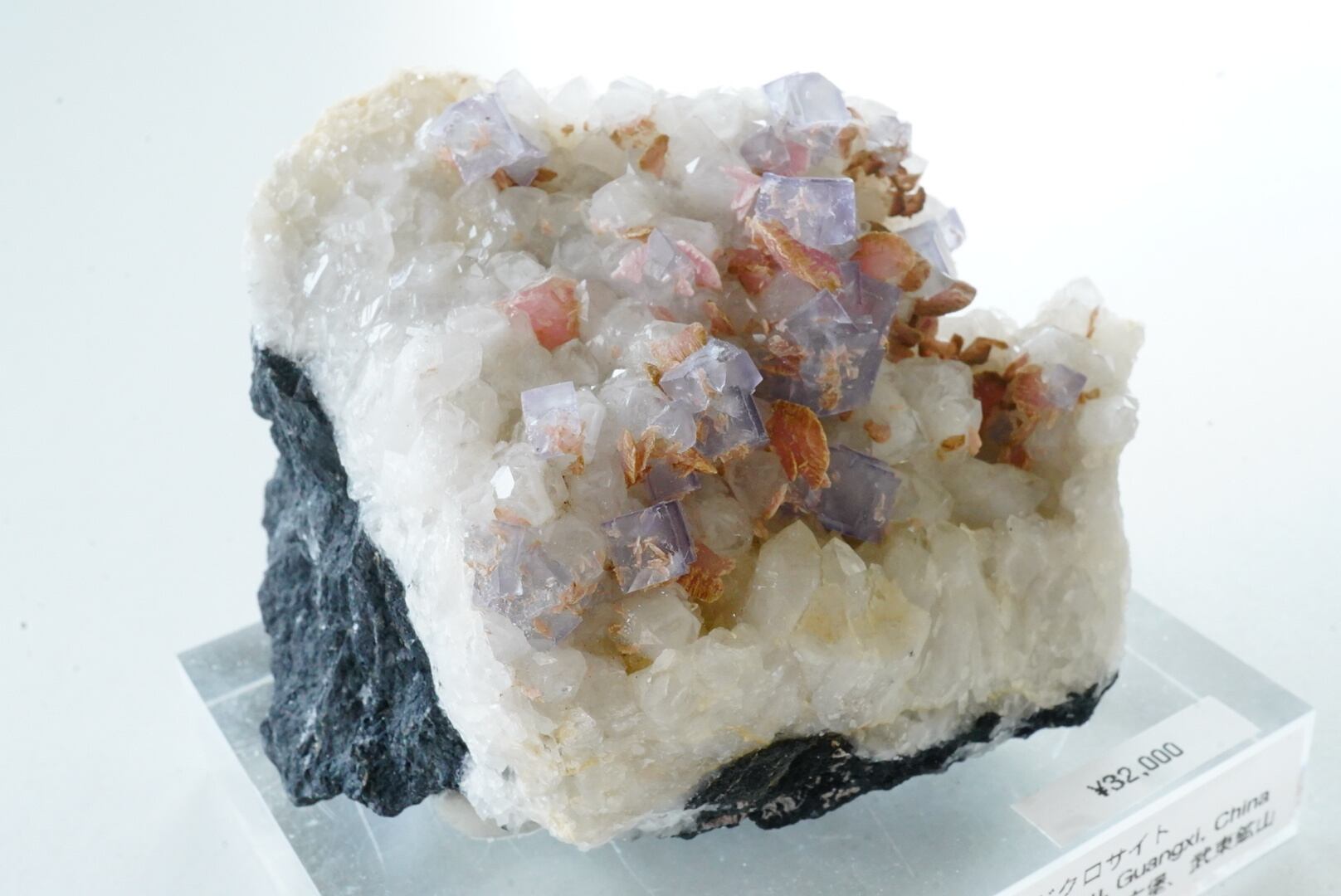 中国、広西チワン族自治区、武東鉱山のフローライト、ロードクロサイトonクォーツ ⑤