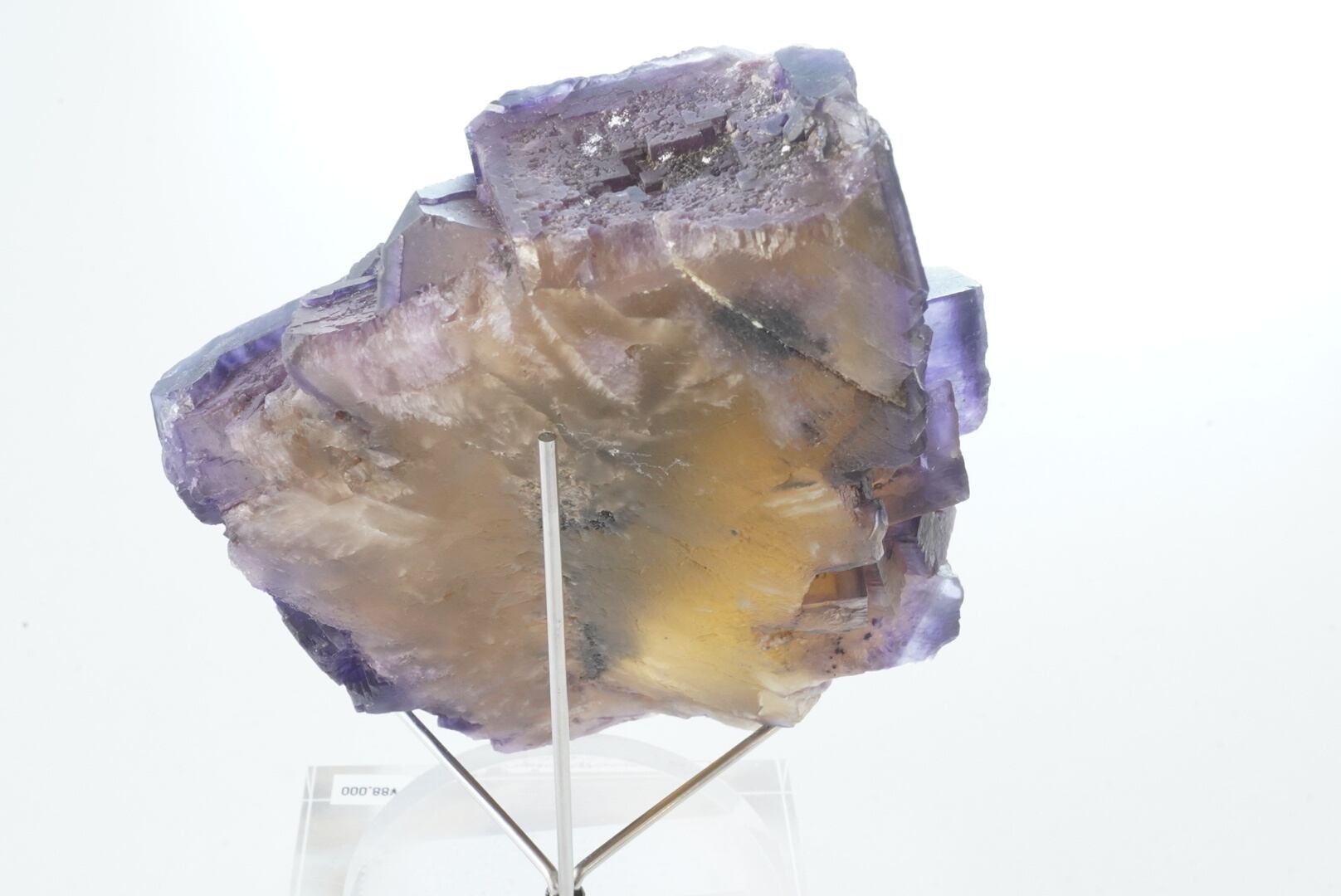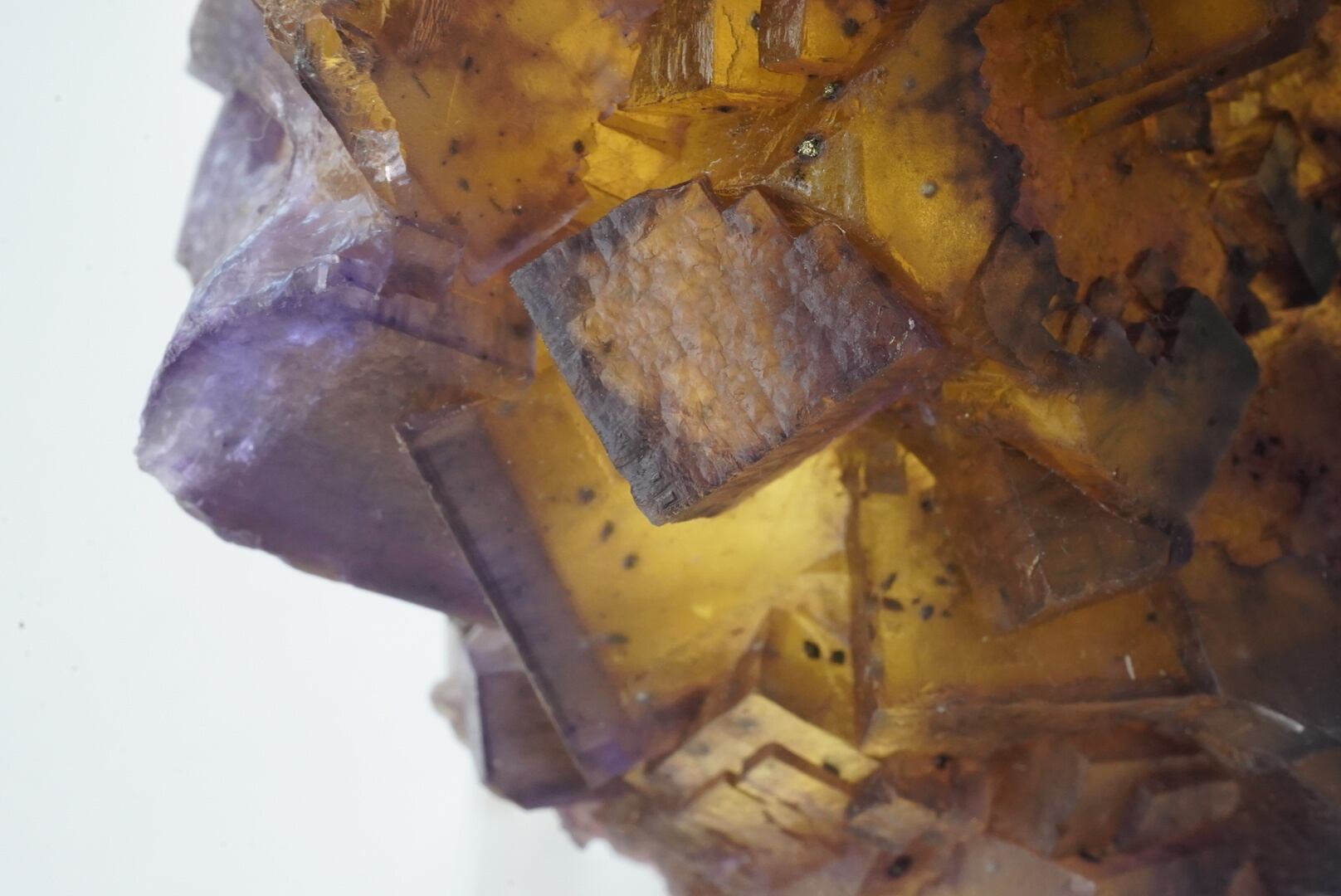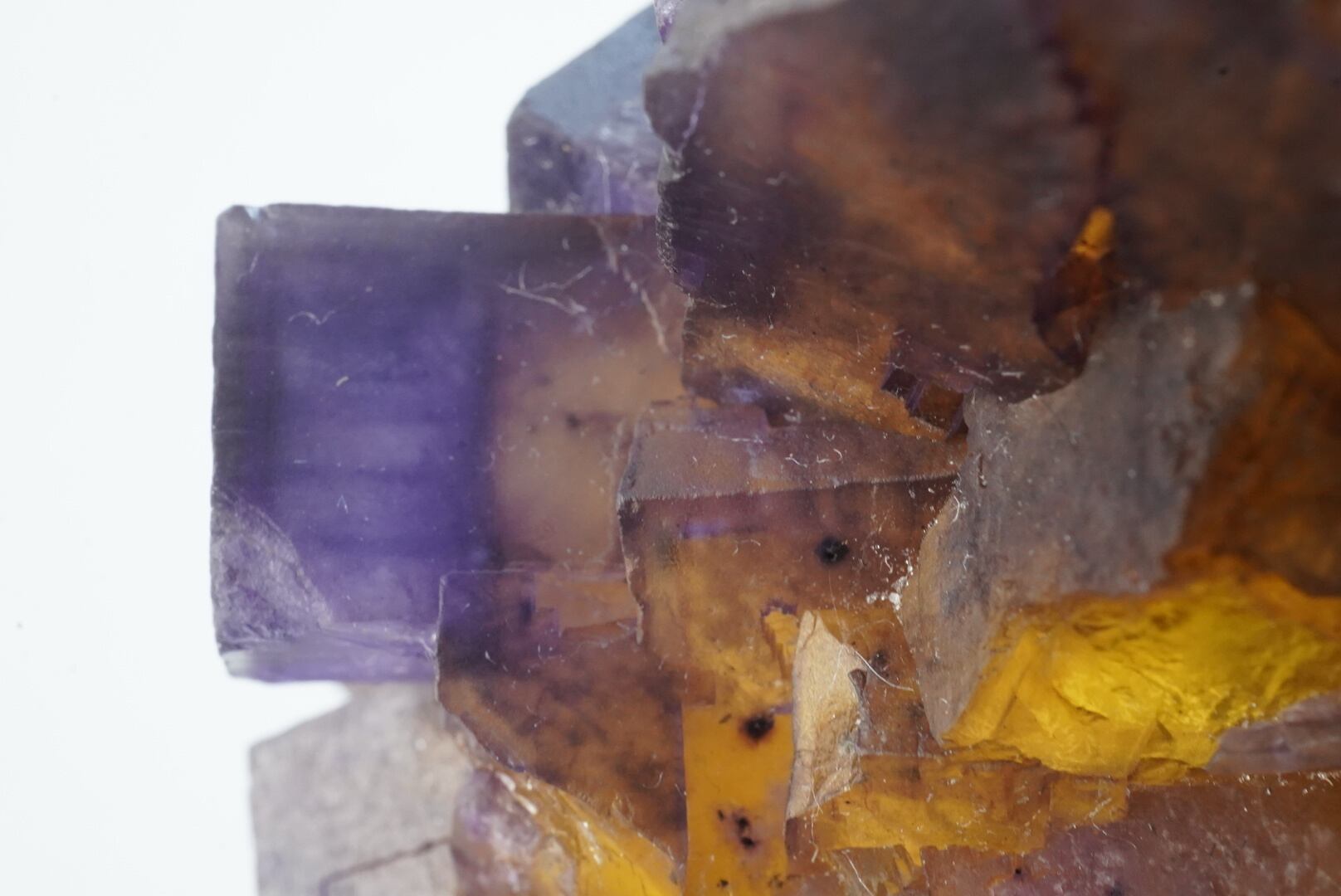 ハニーイエローの上に青みと赤みの紫の層が美しいフローライトです。