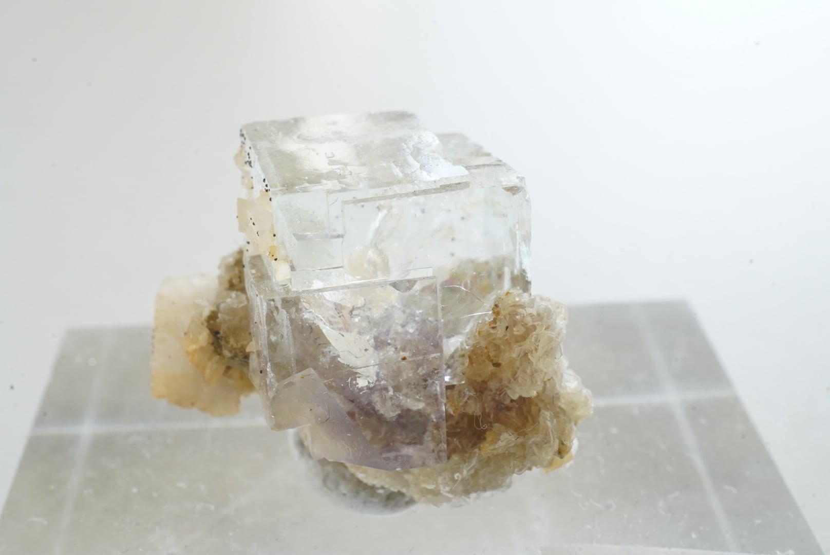 内部は非常に透明で、ほんの少し紫を帯びたインクルージョンが見え母岩が食い込んでいます。
