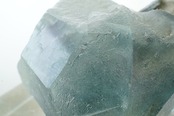 グレイッシュな淡い青緑と紫のバイカラーのフローライトの結晶です。
