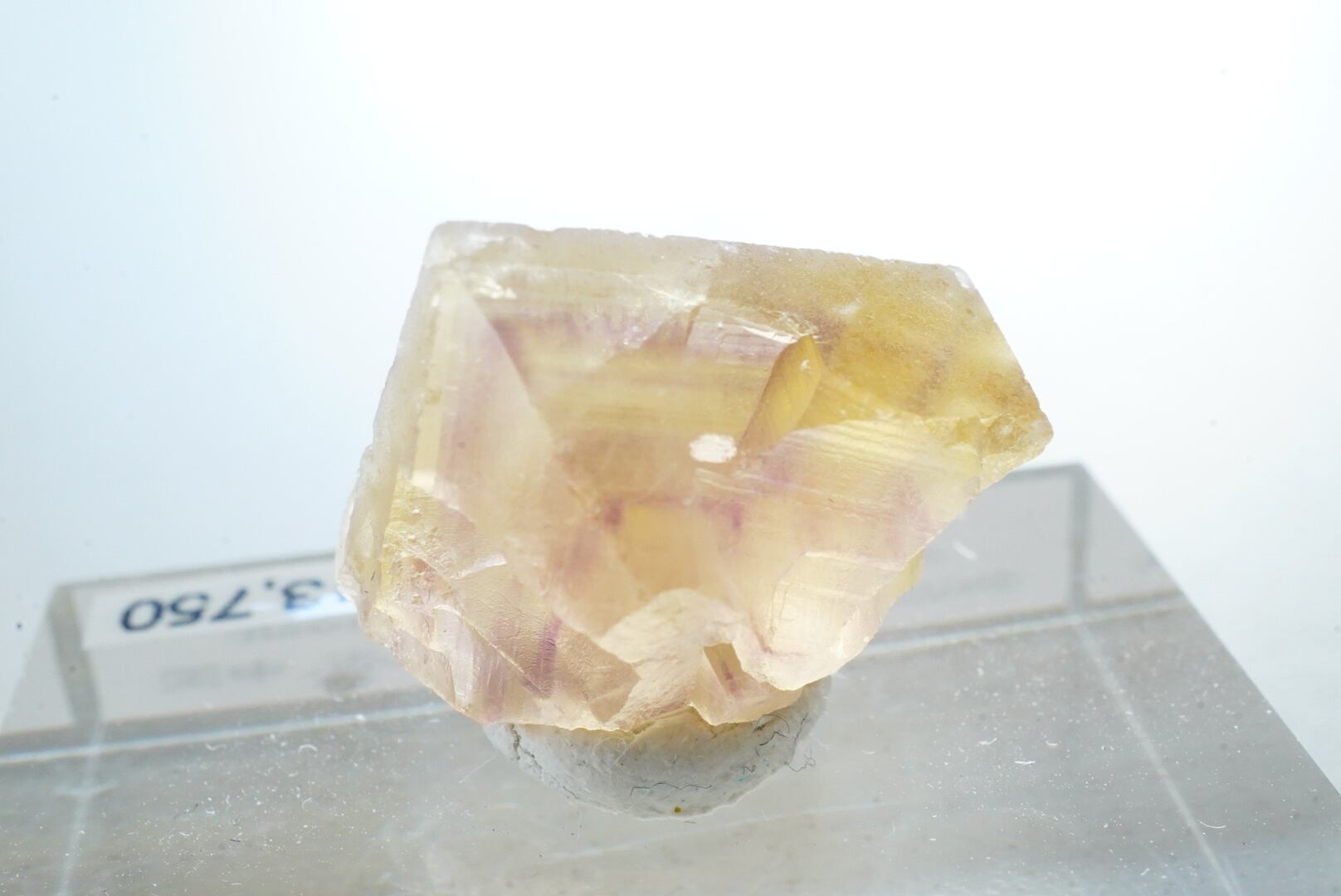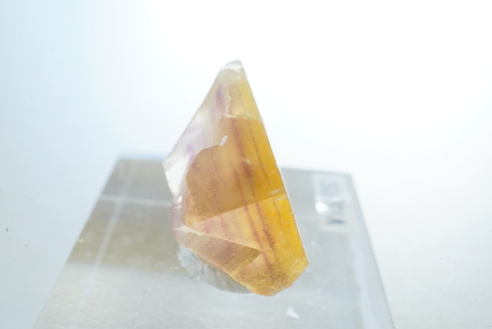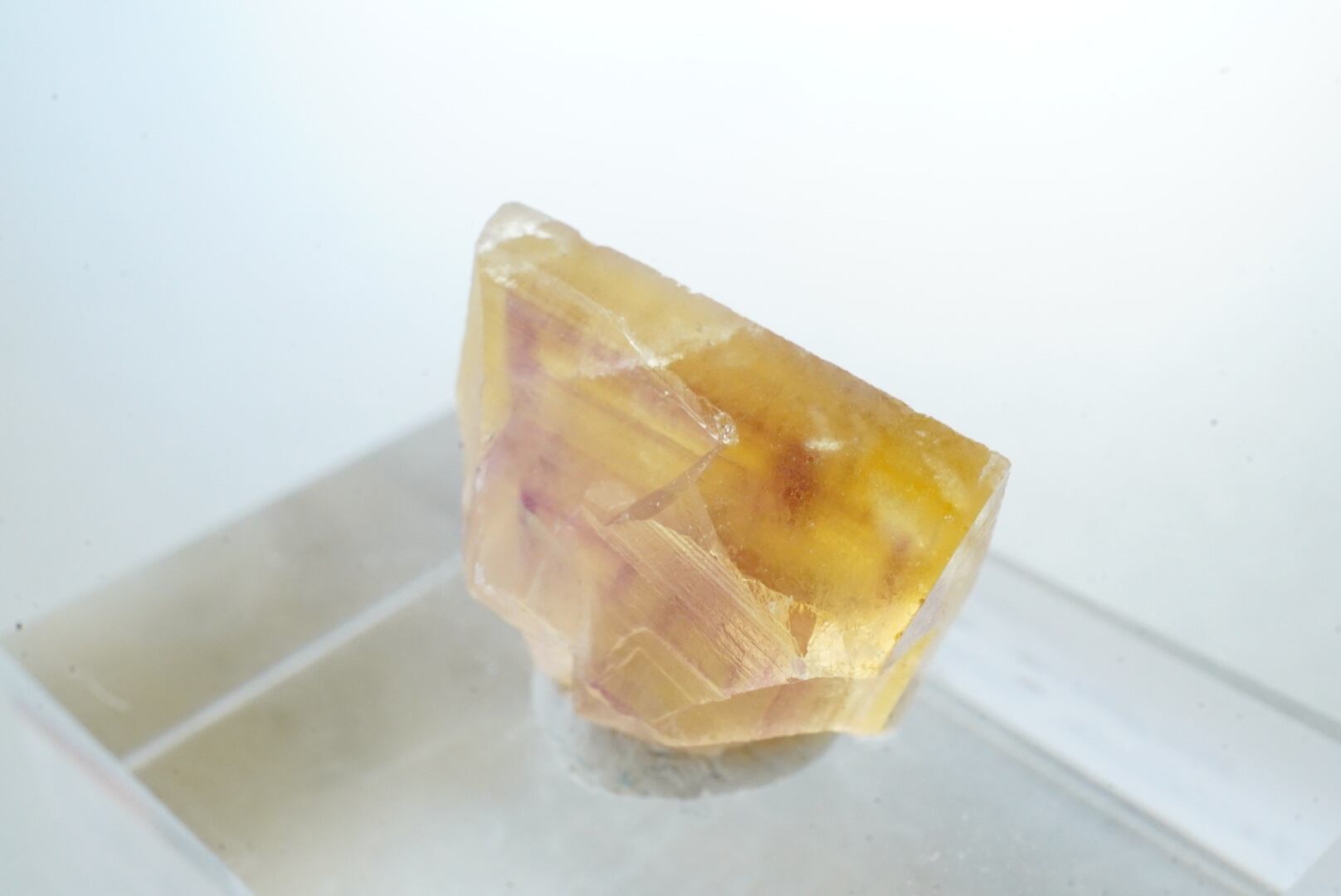 明るいハニーイエローと葡萄色のゾーニングのフローライト結晶です。