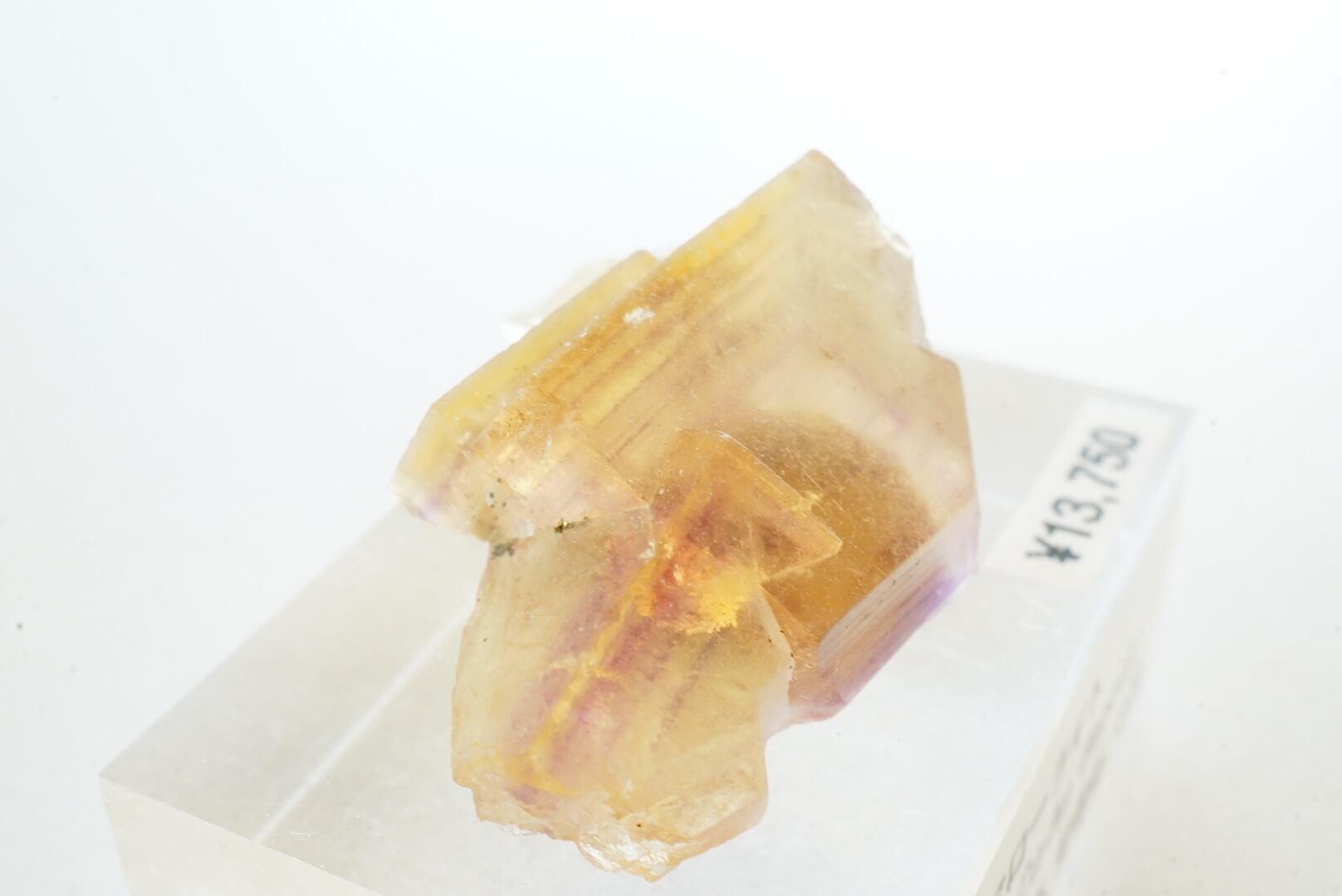 明るいハニーイエローと葡萄色のゾーニングのフローライト結晶です。
