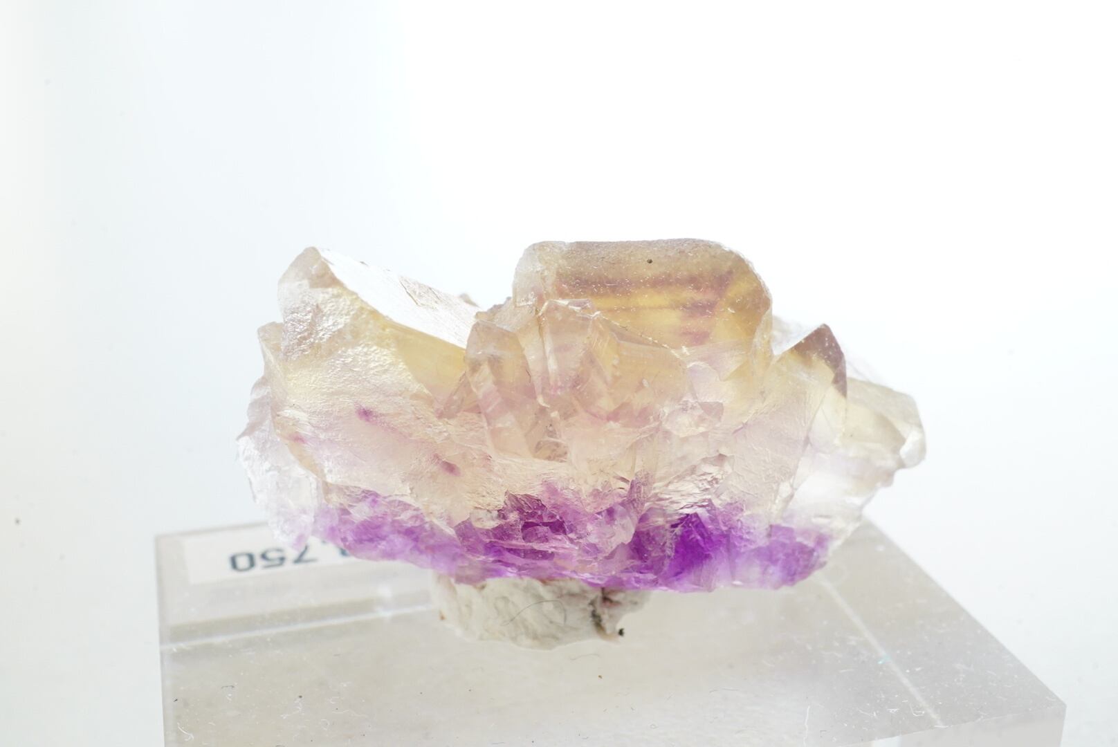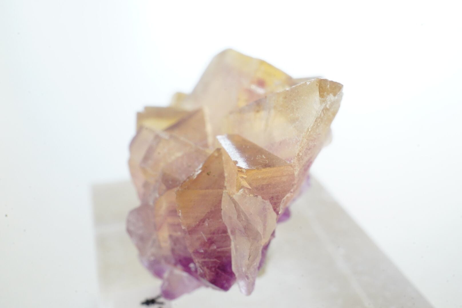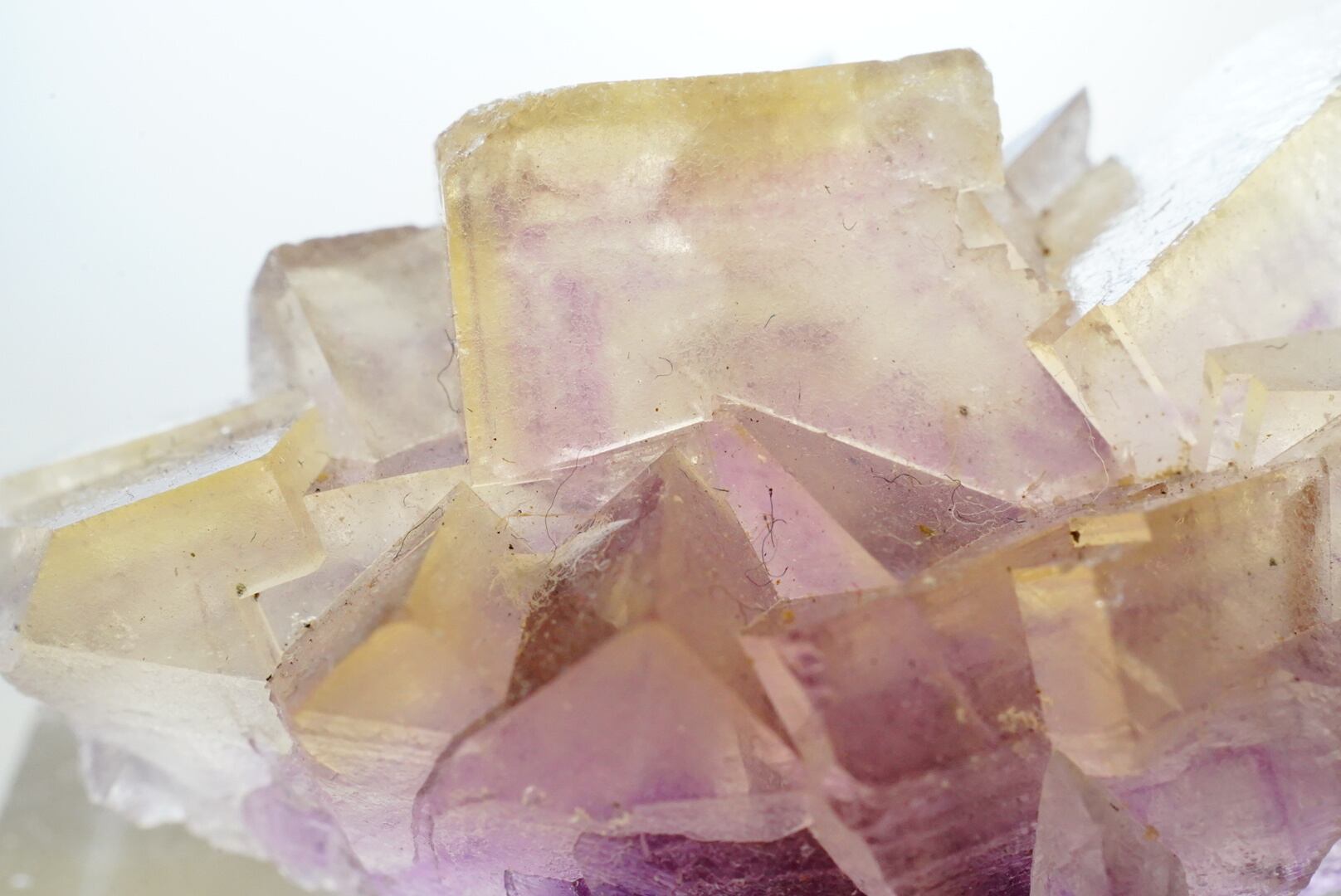 明るいハニーイエローと葡萄色のゾーニングのフローライトクラスターです。