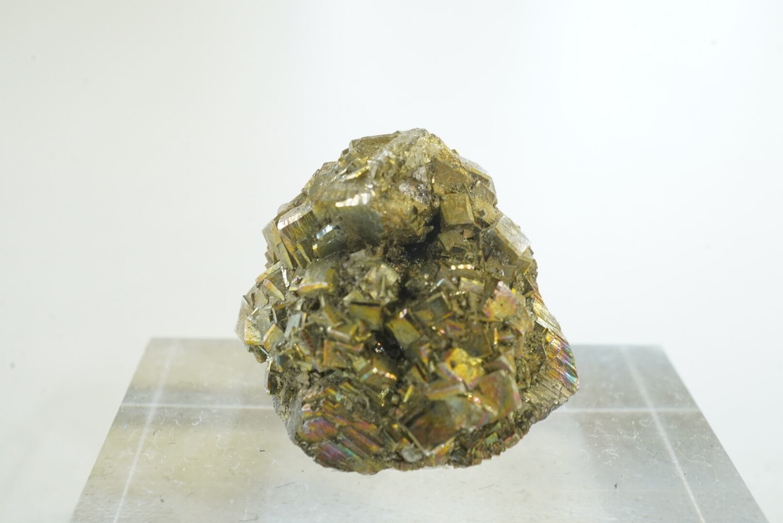 ほんのり虹色を帯びた、複雑な形の黄鉄鉱です。