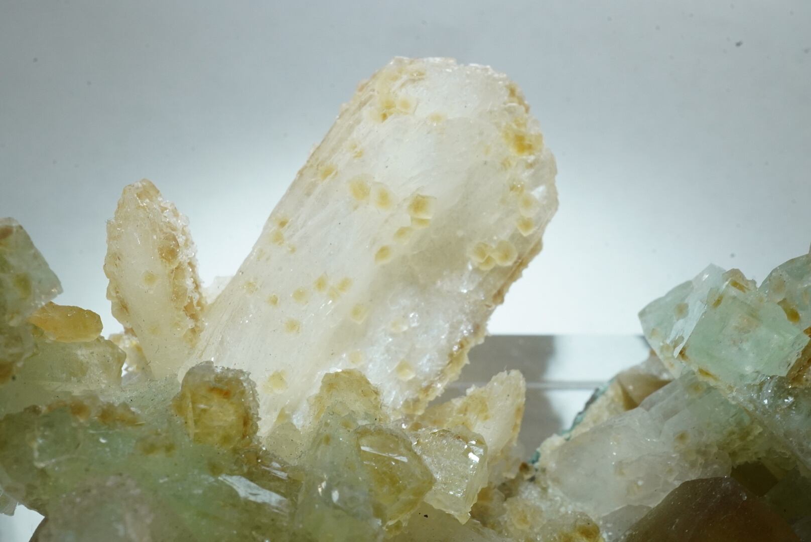 透明で鮮やかなグリーンのアポフィライトとの対比で、